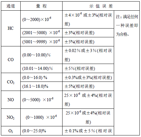 CO:(07)%量程:≤±2% 7.0110)%量程:≤±3%