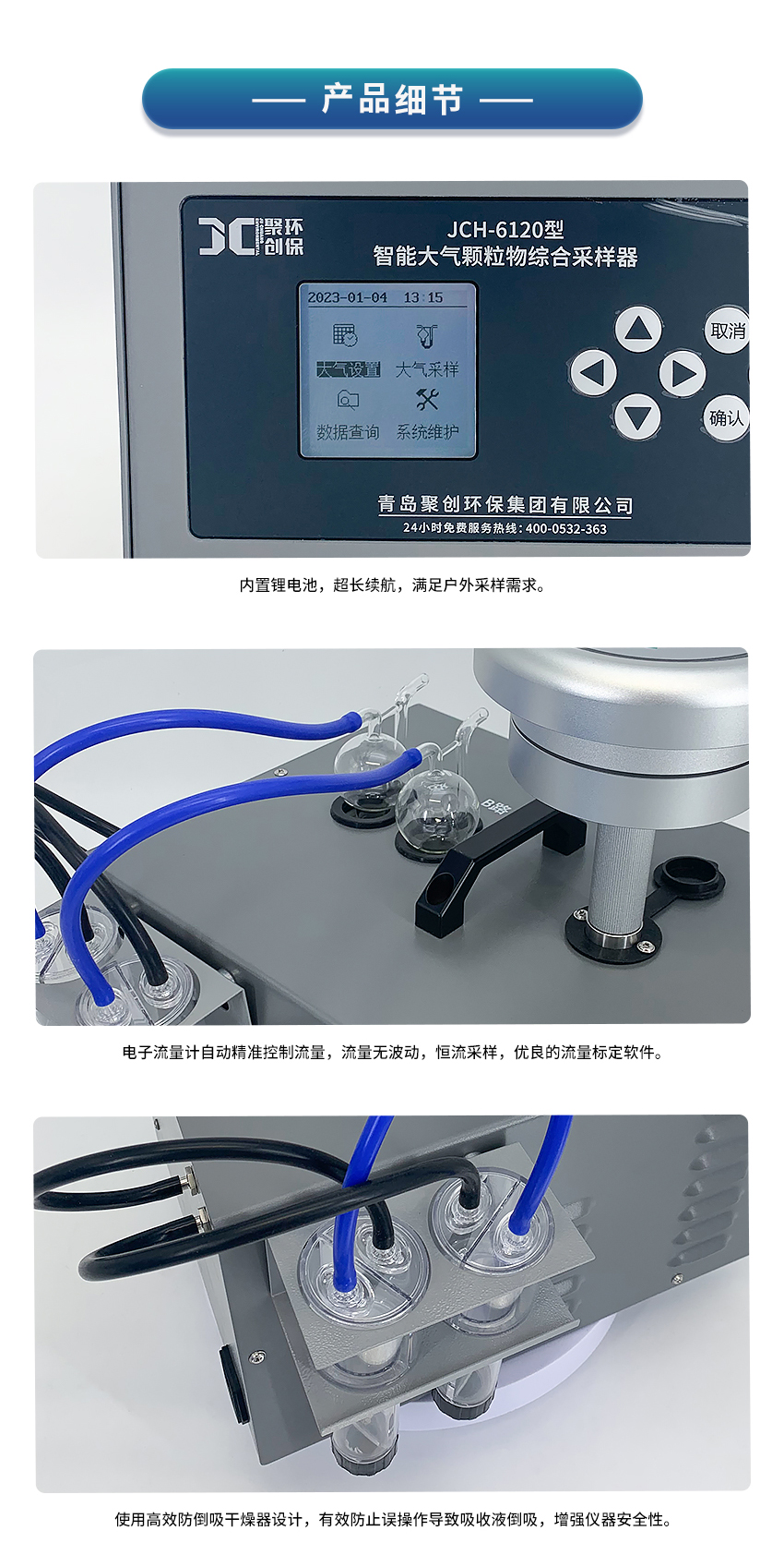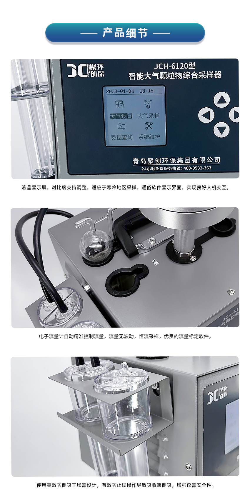 JCH-6120型大氣/顆粒物綜合采樣器 (以下簡稱采樣器) 可以實現(xiàn)環(huán)境空氣和總懸浮顆粒物綜合采樣,應用溶液吸收法采集環(huán)境大氣、室內(nèi)空氣中各種有害氣體,應用濾膜稱重法捕集環(huán)境大氣中的總懸浮微粒(TSP)和可吸入微粒(PM10、PM2.5等)。該系列采樣器性能穩(wěn)定,操作方便,并在小型便攜、流量穩(wěn)定性等方面有較大的改進,大大減少了勞動強度。