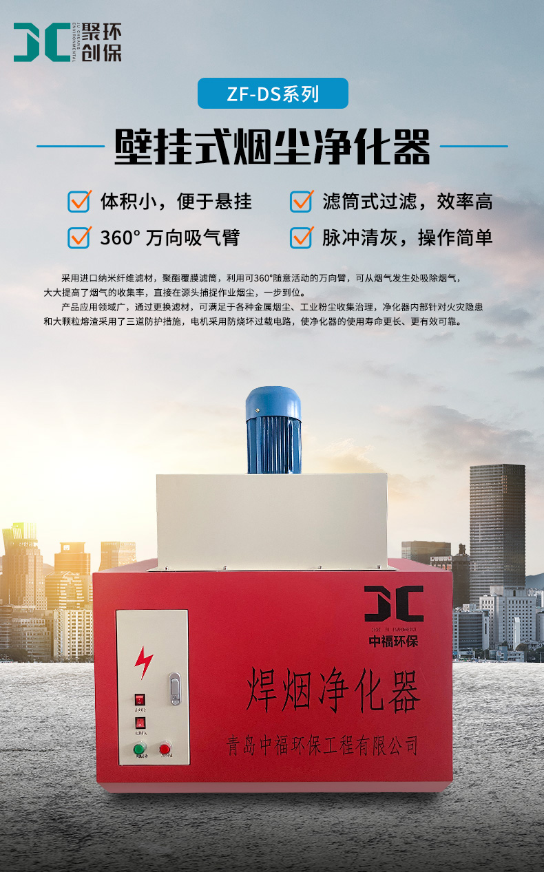 粉塵通過吸氣罩或吸氣臂吸收到過濾裝置中,煙塵和顆粒物被分流板阻擋到積灰抽屜,把大顆粒和火花阻截掉,剩余的煙塵在經過高 效濾筒凈化掉,潔凈的氣體通過風機排出。