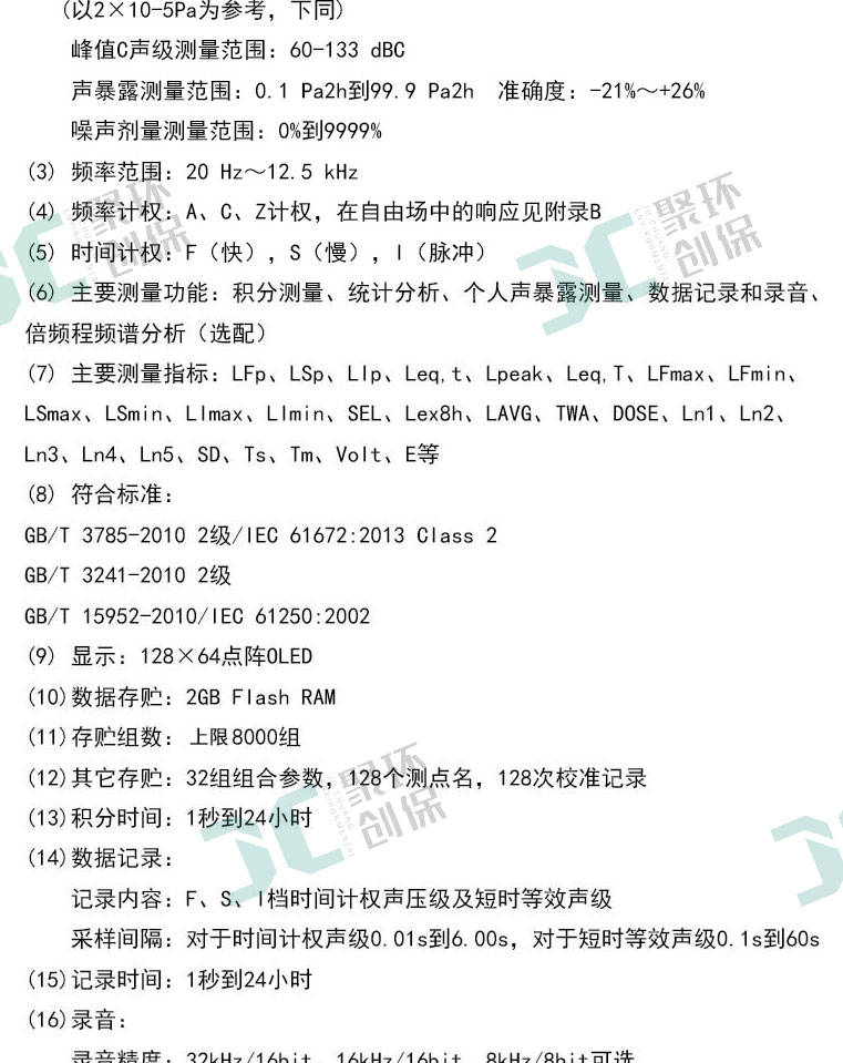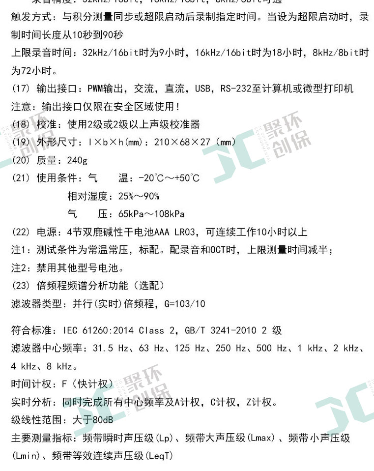 采樣間隔:對于時間計權聲級0.01s到6.00s,對于短時等效聲級0.1s到60s