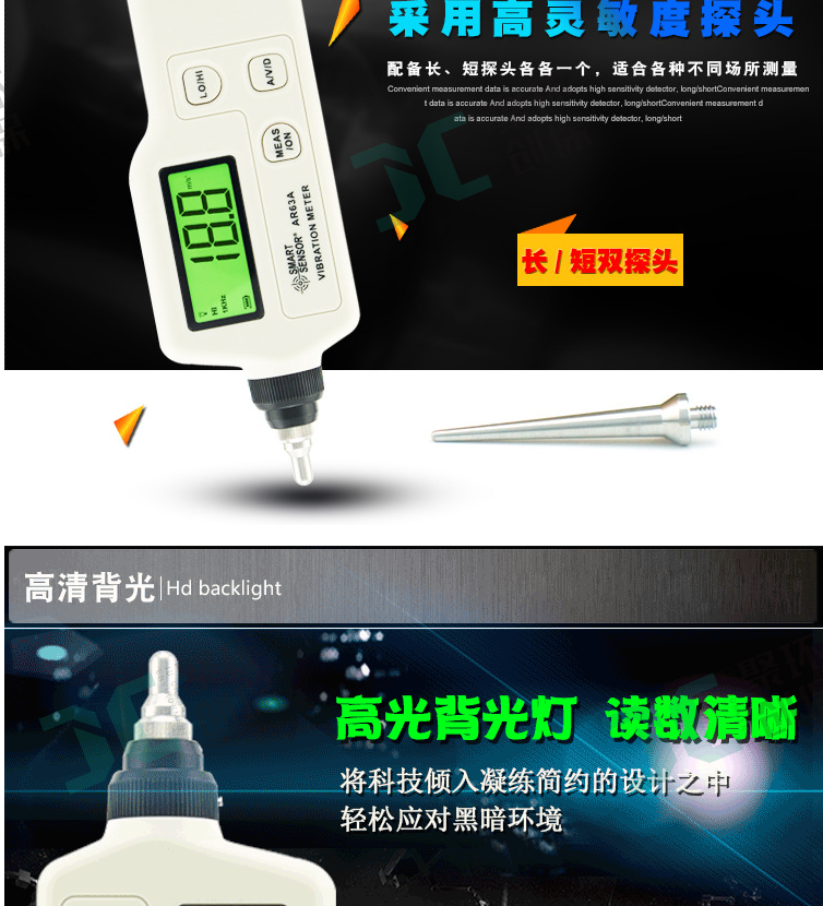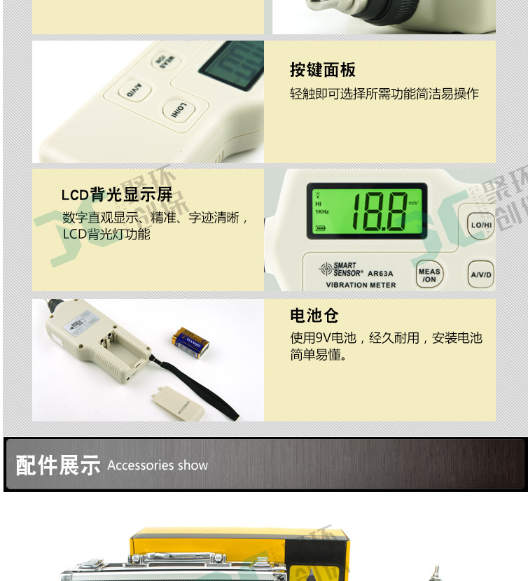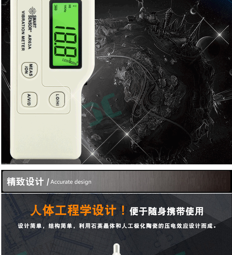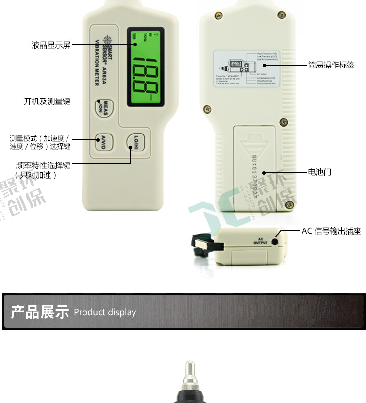 AS63A手持測振儀采用人工極化陶瓷壓電效應設計而成。