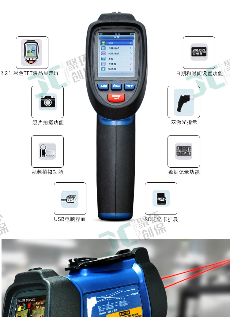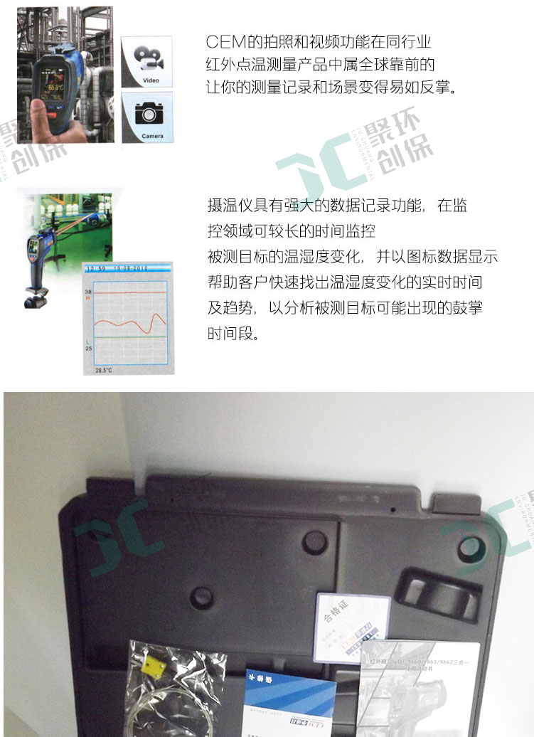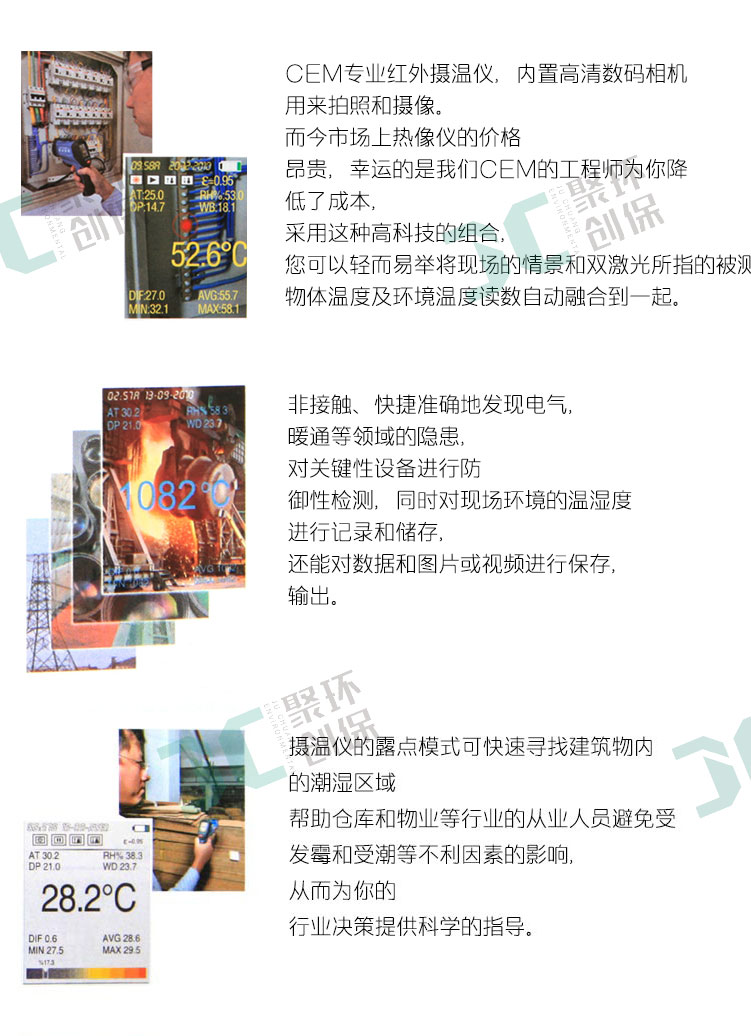 DT-9860是CEM新推出的紅外攝溫儀產(chǎn)品,該產(chǎn)品基于非接觸式紅外測溫儀技術(shù),可測量紅外溫度高達(dá)-50~2200℃,精度高達(dá)±1.5%。該產(chǎn)品獨(dú)創(chuàng)的視頻和照片拍攝功能,并且配備了2.2”彩色TFT液晶屏,可以讓您的工作更直觀和高效。