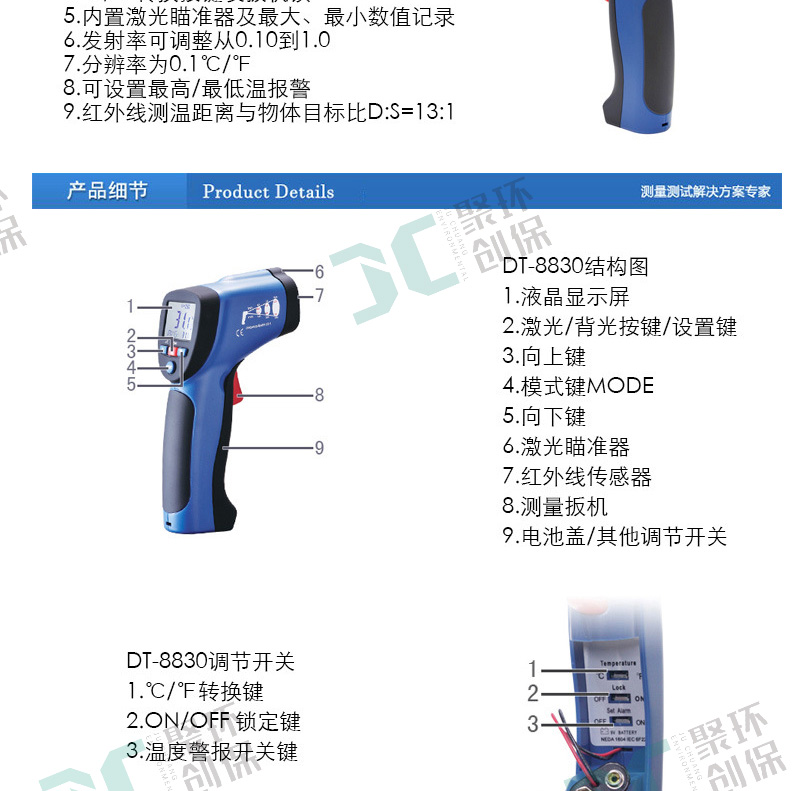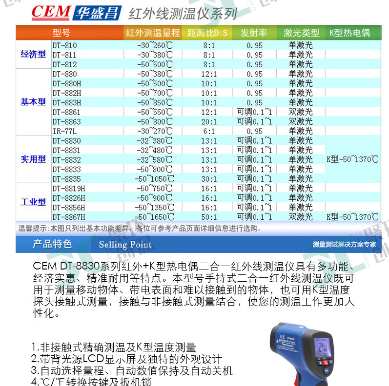 二、DT-8830系列二合一K型+紅外線測溫儀產品參數