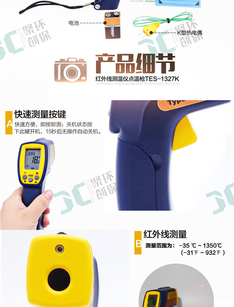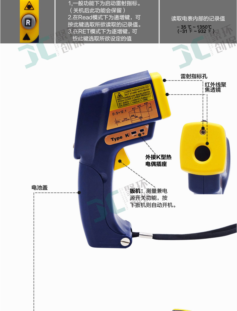 1、測量范圍:-35℃~500℃(-31℉~932℉)