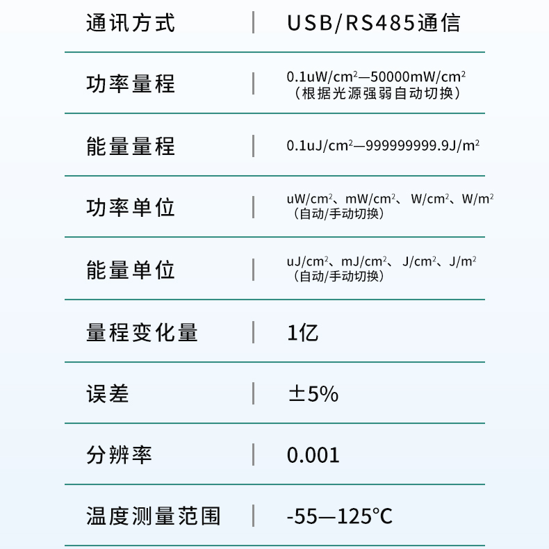 0.1uw/cm2-5mw/cm2(根據光源強弱自動切換單位)