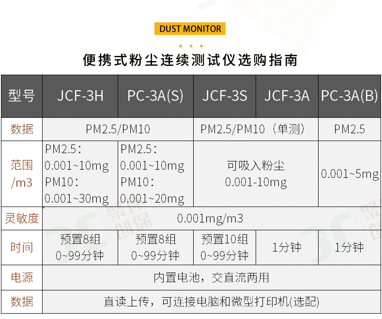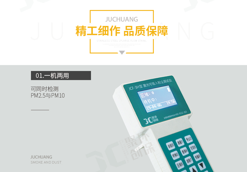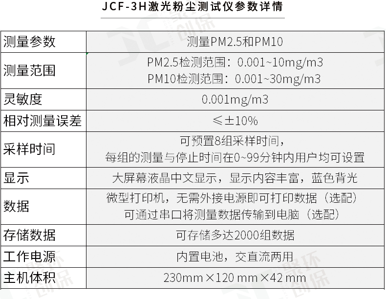 聚創JCF-3H為光散射法便攜式直讀測量儀器,可以快速準確的測量出呼吸性粉塵顆粒物(PM2.5、PM10)的高性能儀器。該儀器以國家環保標準《WS/T 206-2001公共場所空氣中可吸入顆粒物(PM10)測定方法——光散射法》為依據由我公司自主研發的新一代智能化測量儀器。