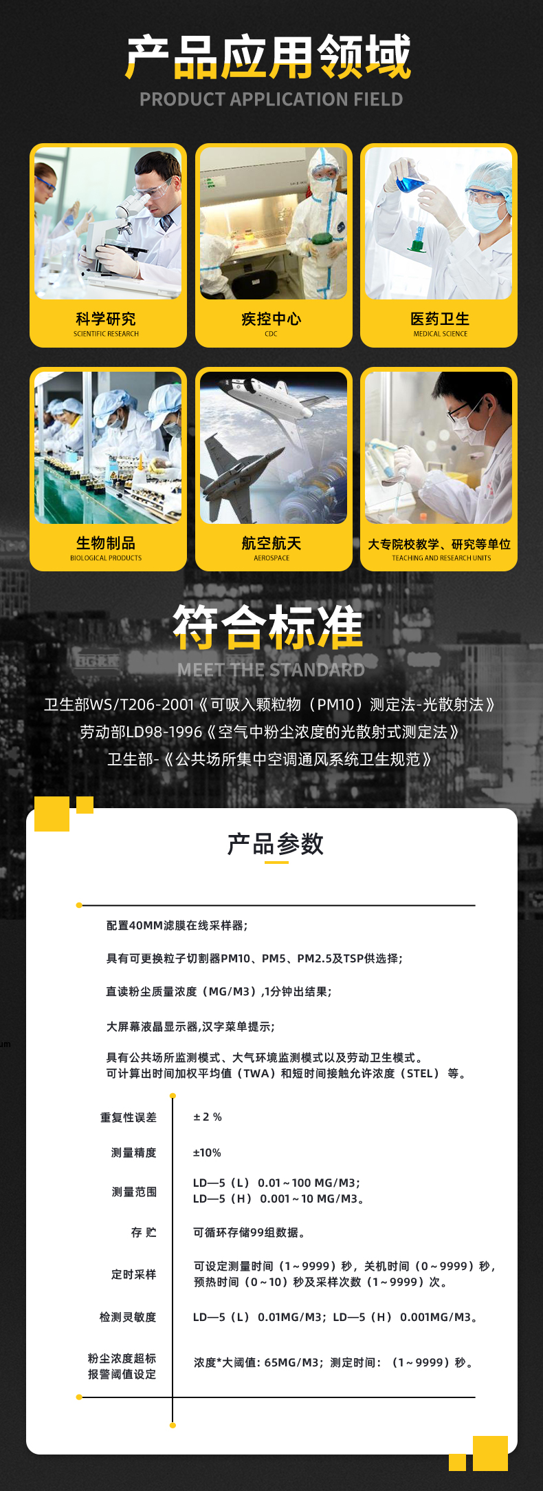 二、LD-5微電腦粉塵檢測儀產品參數