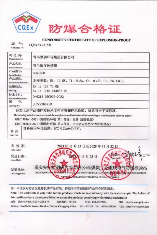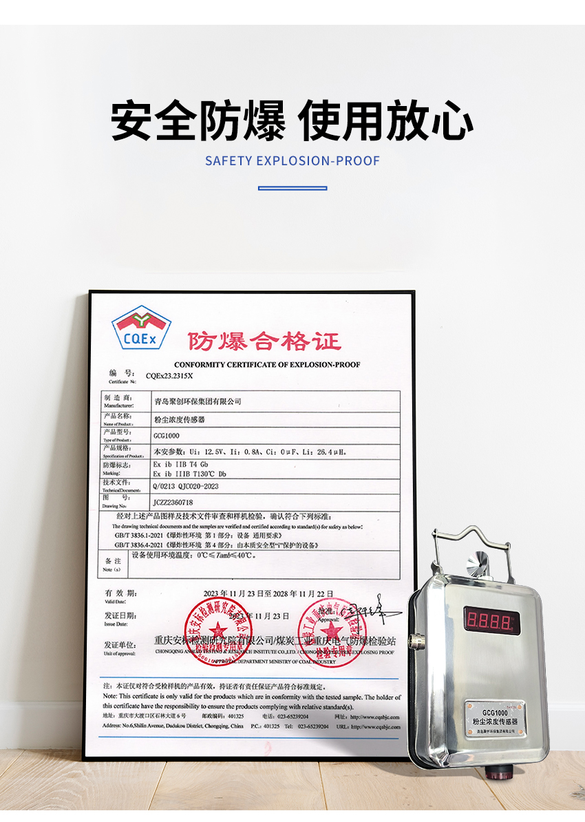 GCG - 1000 防爆型粉塵監(jiān)測(cè)傳感器基于國(guó)內(nèi)外先進(jìn)的測(cè)塵技術(shù)研制而成,主要用于檢測(cè)空氣中浮游粉塵的質(zhì)量濃度。該傳感器具備多種功能:可通過數(shù)碼管進(jìn)行現(xiàn)場(chǎng)顯示,并將測(cè)量結(jié)果轉(zhuǎn)換成頻率信號(hào)輸出,以供礦井監(jiān)測(cè)或其他測(cè)控系統(tǒng)使用;搭配防爆電源,能夠直接實(shí)現(xiàn)粉塵濃度的監(jiān)測(cè);配備防爆報(bào)警裝置,可實(shí)現(xiàn)預(yù)置超標(biāo)報(bào)警;配合防爆分站及相關(guān)數(shù)據(jù)采集系統(tǒng),能達(dá)成設(shè)備與終端的雙向連接,方便客戶進(jìn)行操控。