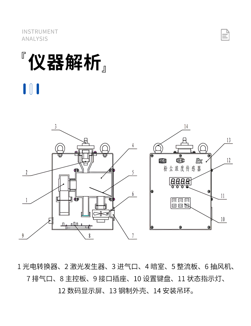 14. 安裝吊環(huán):便于將傳感器固定安裝在作業(yè)場(chǎng)所的指定位置,確保其在運(yùn)行過程中保持穩(wěn)定。