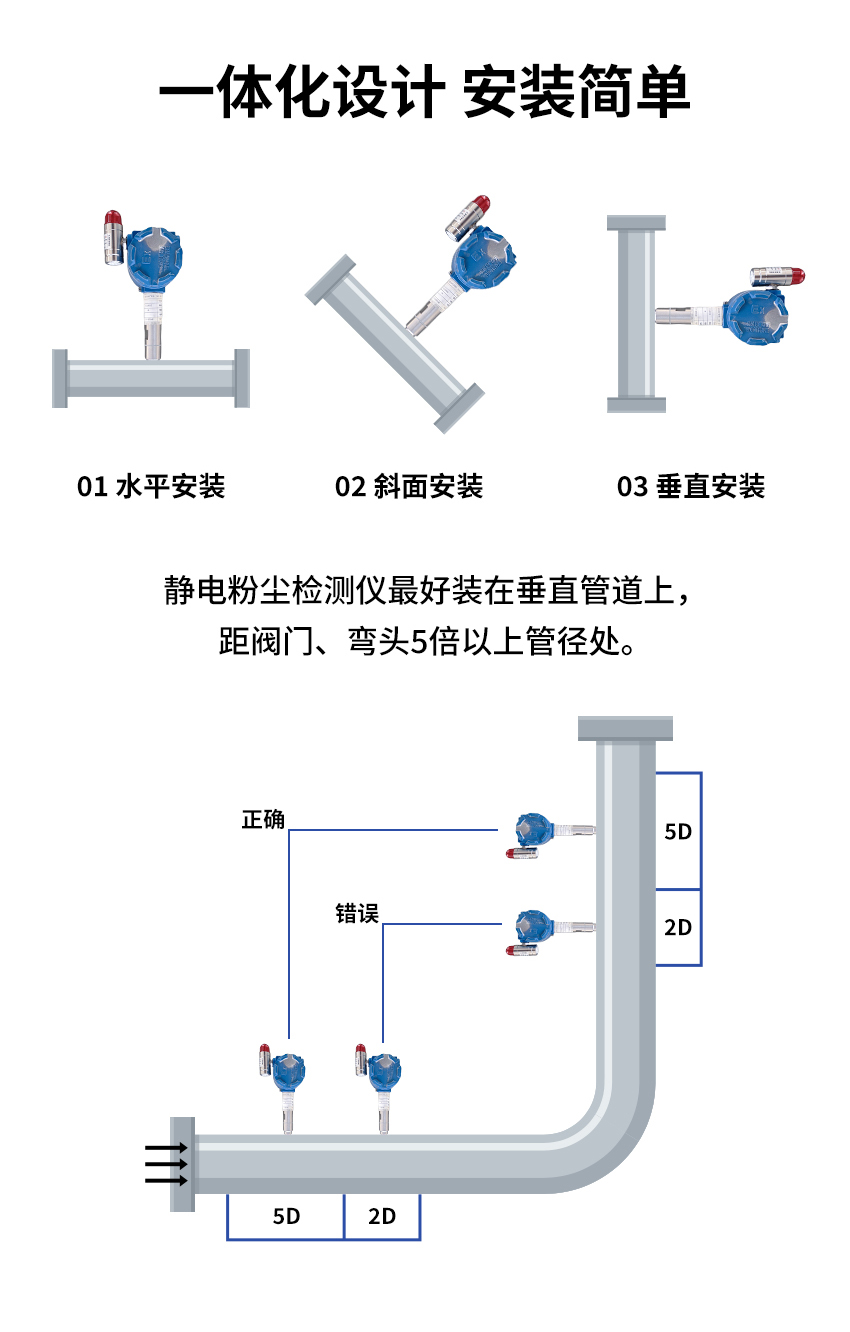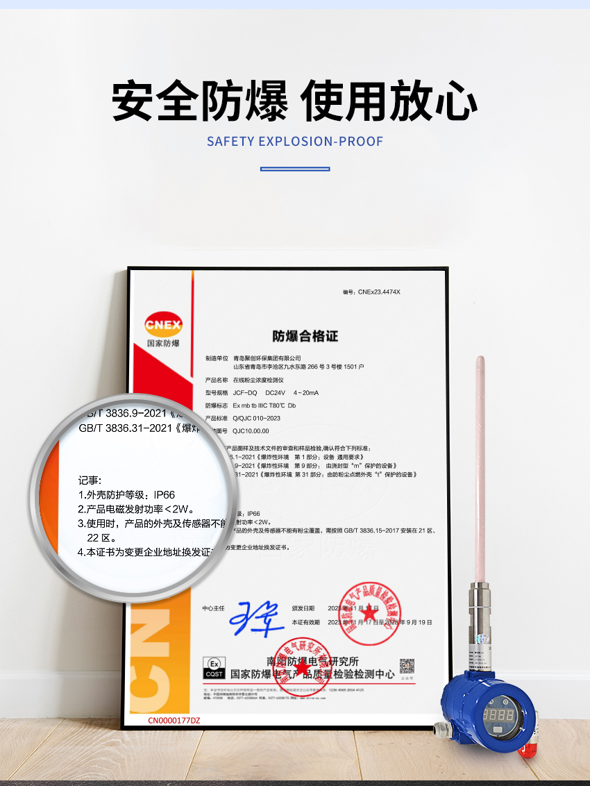 3. 電氣隔離保障安全傳輸:接線盒內置一體化變送器,輸出的4 - 20mA電流與粉塵感應探針之間實現電氣隔離,確保信號的安全傳輸。