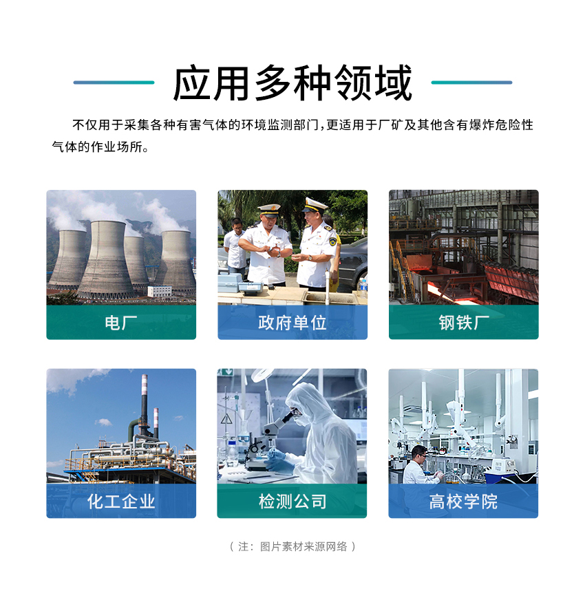 適用于環境監測、衛生、職業病預防、工礦有害氣體采集、居室環境測定、大專院校教學、研究等單位對空氣中各種有害氣體的采集。