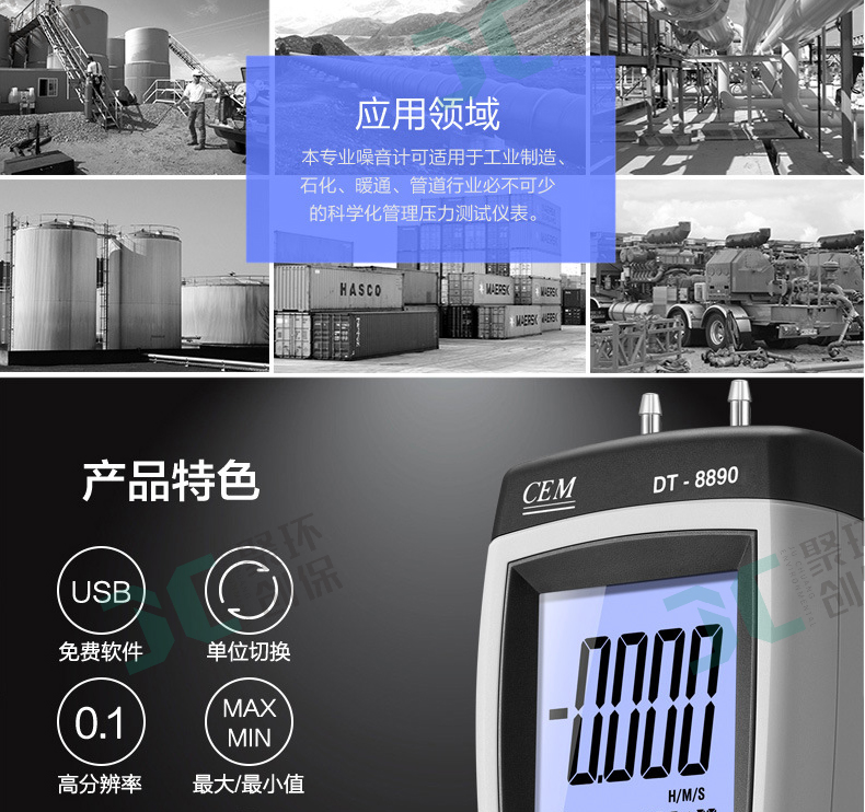 DT-8890/DT-8890A能測量0到±5psi的壓差,11種可選壓力單位:inH2O、psi、bar、mbar、kPa、inHg、 mmHg、ozin2、ftH2O、kgcm2。具有數(shù)據(jù)保持,*大值/*小值/平均值保持、調(diào)零、偏移和數(shù)據(jù)補(bǔ)償。USB連接功能實(shí)現(xiàn)人機(jī)同步測量,以 及測量數(shù)據(jù)的保存和科學(xué)分析以便為每一項(xiàng)決策提供*佳數(shù)據(jù)化依據(jù)。是工業(yè)制造、石化、暖通、管道行業(yè)必不可少的科學(xué)化管理壓力測試儀表。