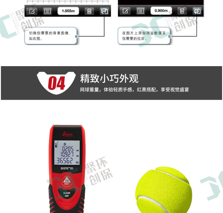 徠卡D1測距儀小巧輕便,測量快速簡單。可廣泛應用于家庭/工業/商業的裝修、裝橫和設計等領域。