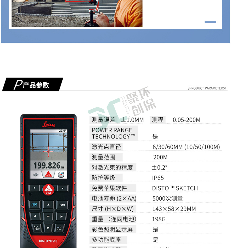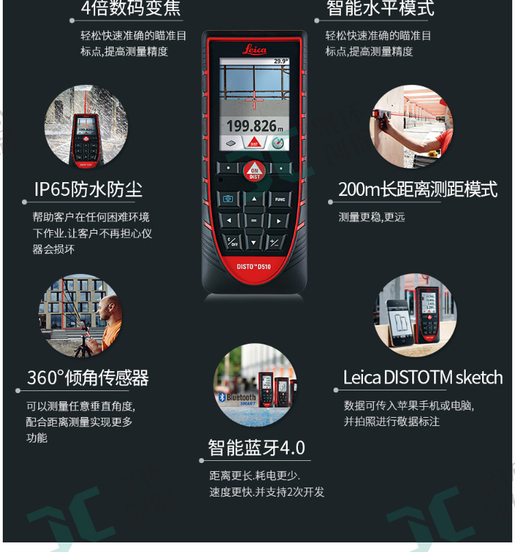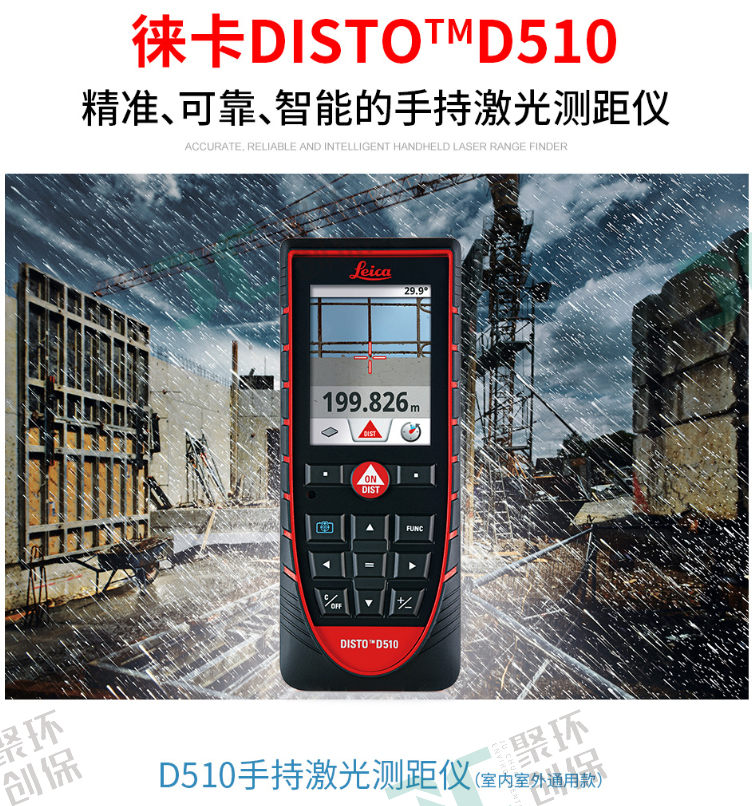 全新的徠卡LEICA DISTO D510代表容易和輕松的戶外距離測量。獨特的組合的數字Pointfinder的和360°傾角傳感器傳統的測距儀的測量是不可能達到的。