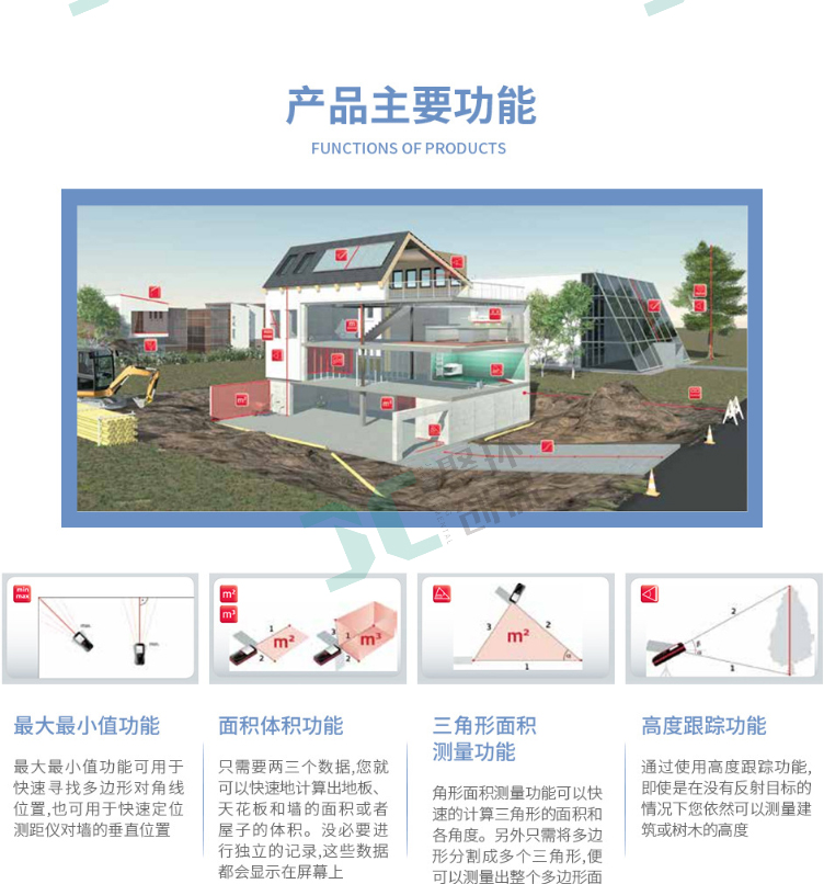 本系列產品主要分為國產和進口品牌,手持式激光測距儀,使用簡單安全,僅需單人操作無需借助其他工具,即使在非常苛刻的測量環境中也能輕松應對。