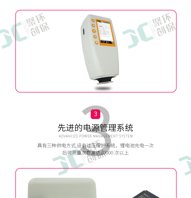 鋰電池充電一次后可測量次數高達10000 次以上,是同行業8-10倍。此儀器設有過壓保護系統,當客戶接錯電源時儀器內部的過壓系統就會啟動,從而保護儀器不會被燒壞。