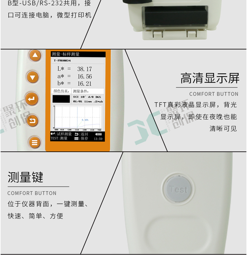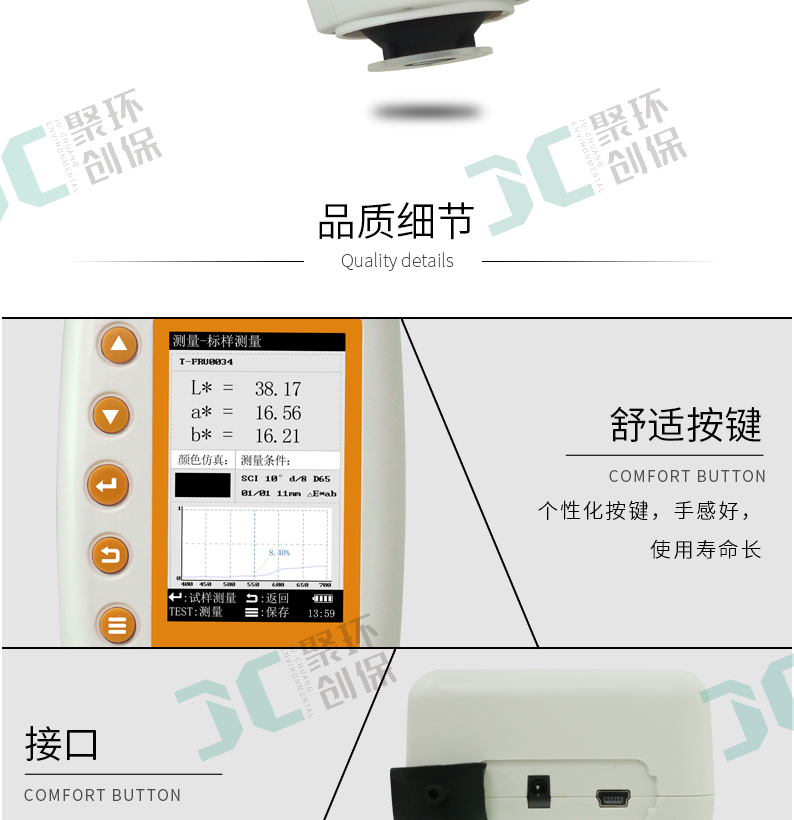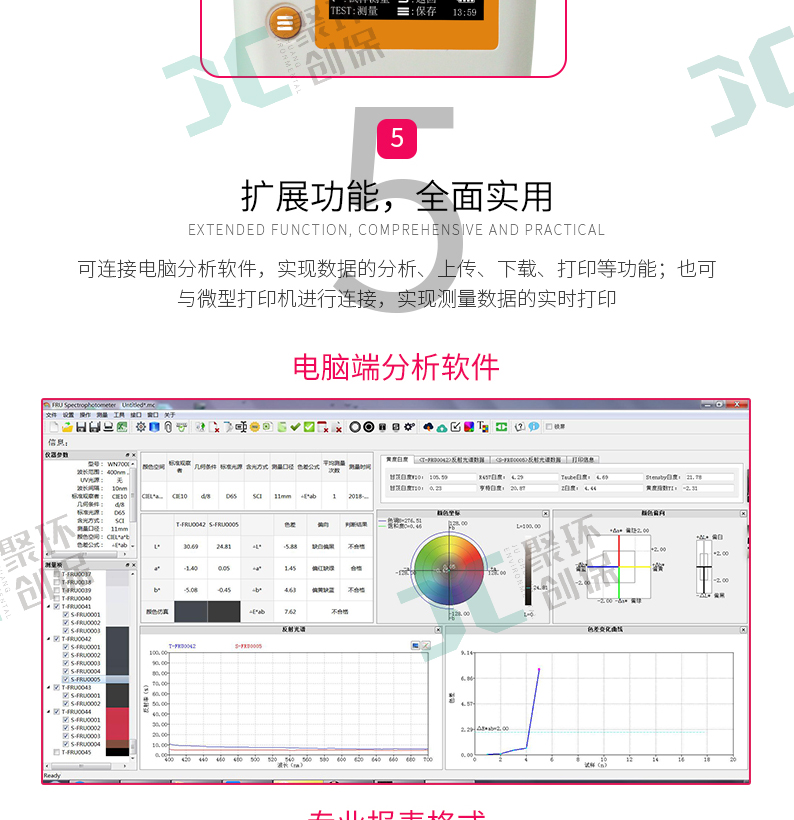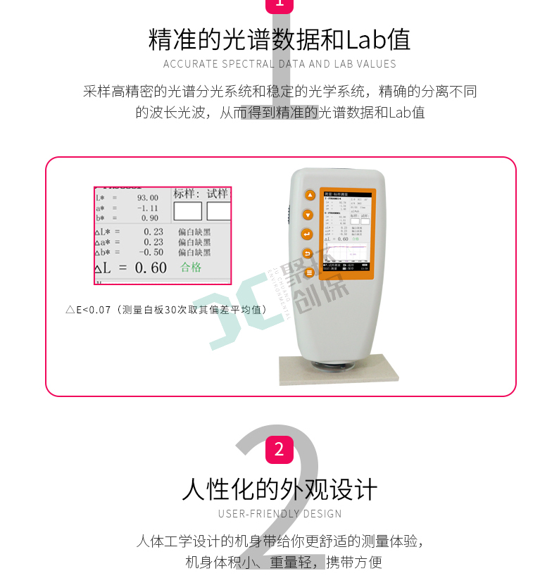 采樣高精密的光譜分光系統和穩定的光學系統,精確的分離不同的波長光波,從而得到精準的光譜數據和Lab值。