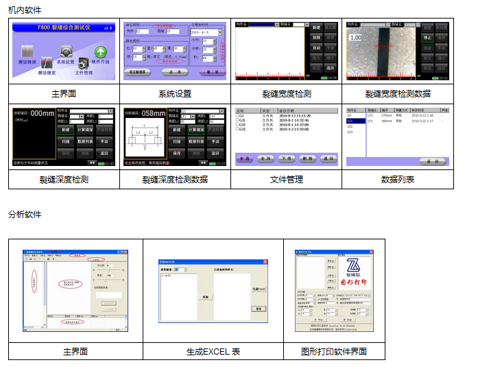 用于橋梁、隧道、墻體、混凝土路面、非金屬表面等裂縫深度檢測和裂縫寬度檢測及被測裂縫圖像存儲。
