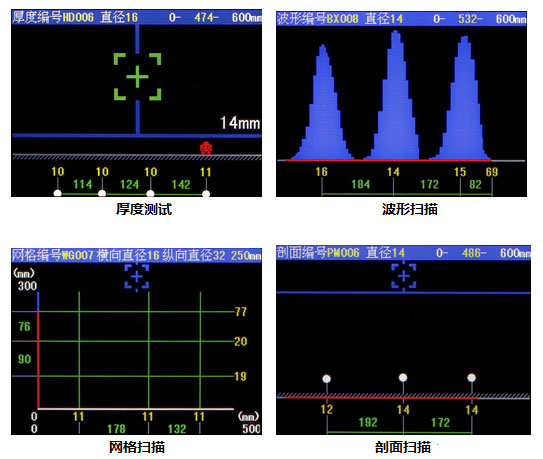 ◆單點測量、網格掃描、波形掃描、剖面掃描四種都完全實現在測量過程中可以任意前后翻頁后查看數據和圖形,以及隨時后退刪除操作有誤測試數據,便于現場測試使用;