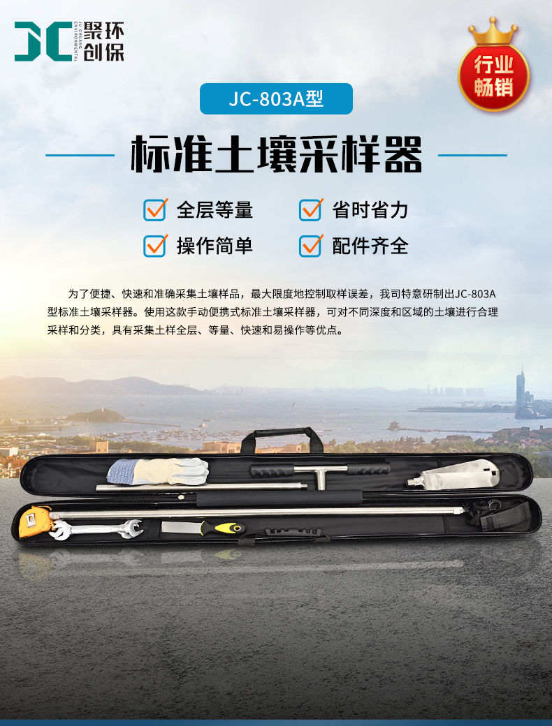 為了便捷、快速和準確采集土壤樣品,最大限度地控制取樣誤差,我司特意研制出JC-803A型標準土壤采樣器。使用這款手動便攜式標準土壤采樣器,可對不同深度和區(qū)域的土壤進行合理采樣和分類,具有采集土樣全層、等量、快速和易操作等優(yōu)點。