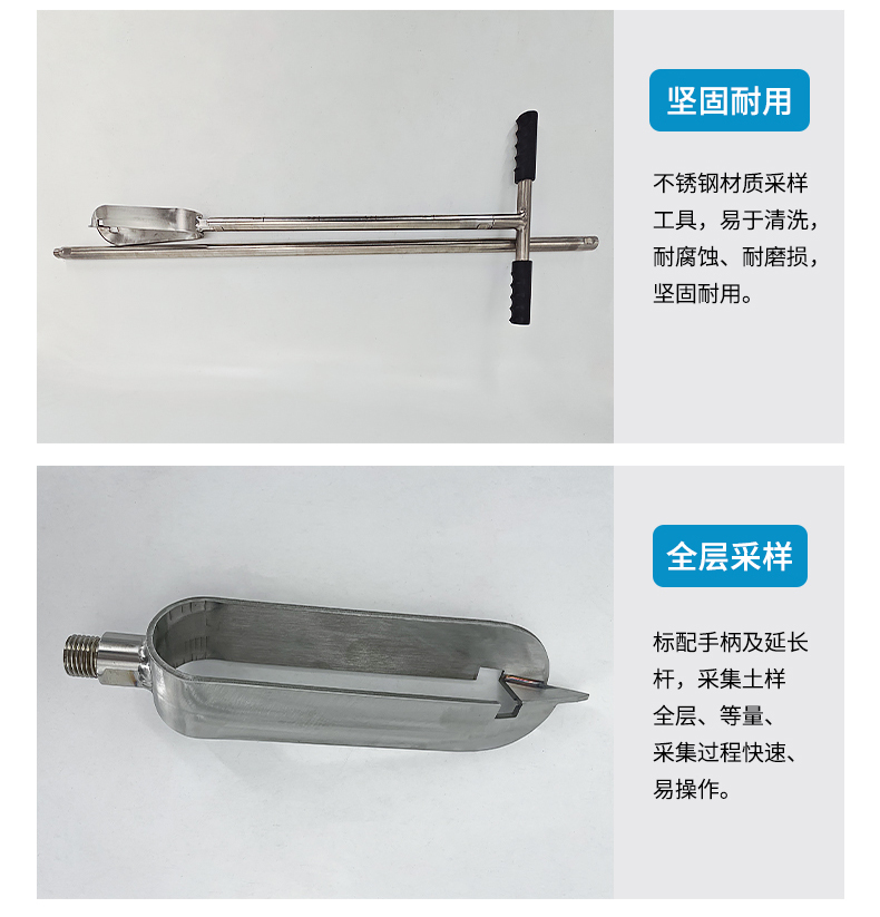4.不銹鋼材質采樣工具,易于清洗,耐腐蝕、耐磨損,堅固耐用。