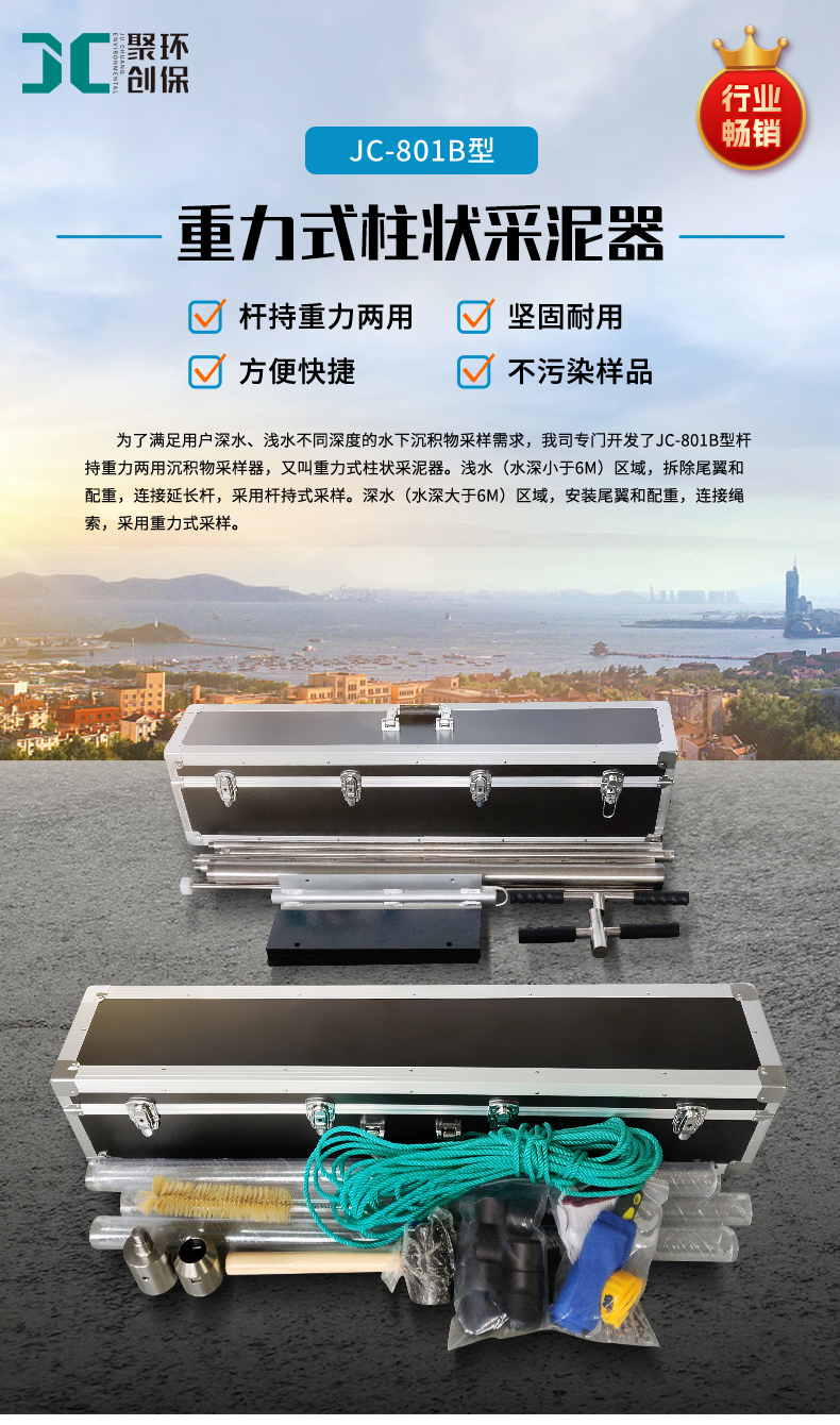 為了滿足用戶深水、淺水不同深度的水下沉積物采樣需求,我司專門開發了JC-801B型桿持重力兩用沉積物采樣器,又叫重力式柱狀采泥器。