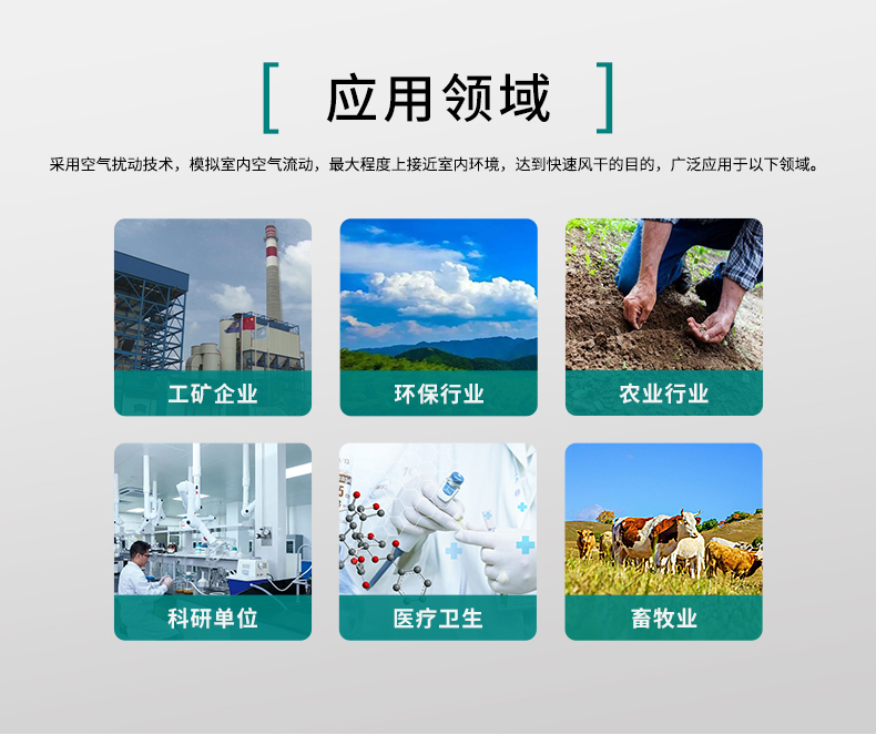 • 1、采用空氣擾動技術,模擬室內空氣流動,大程度上接近室內環境,達到快速風干的目的。