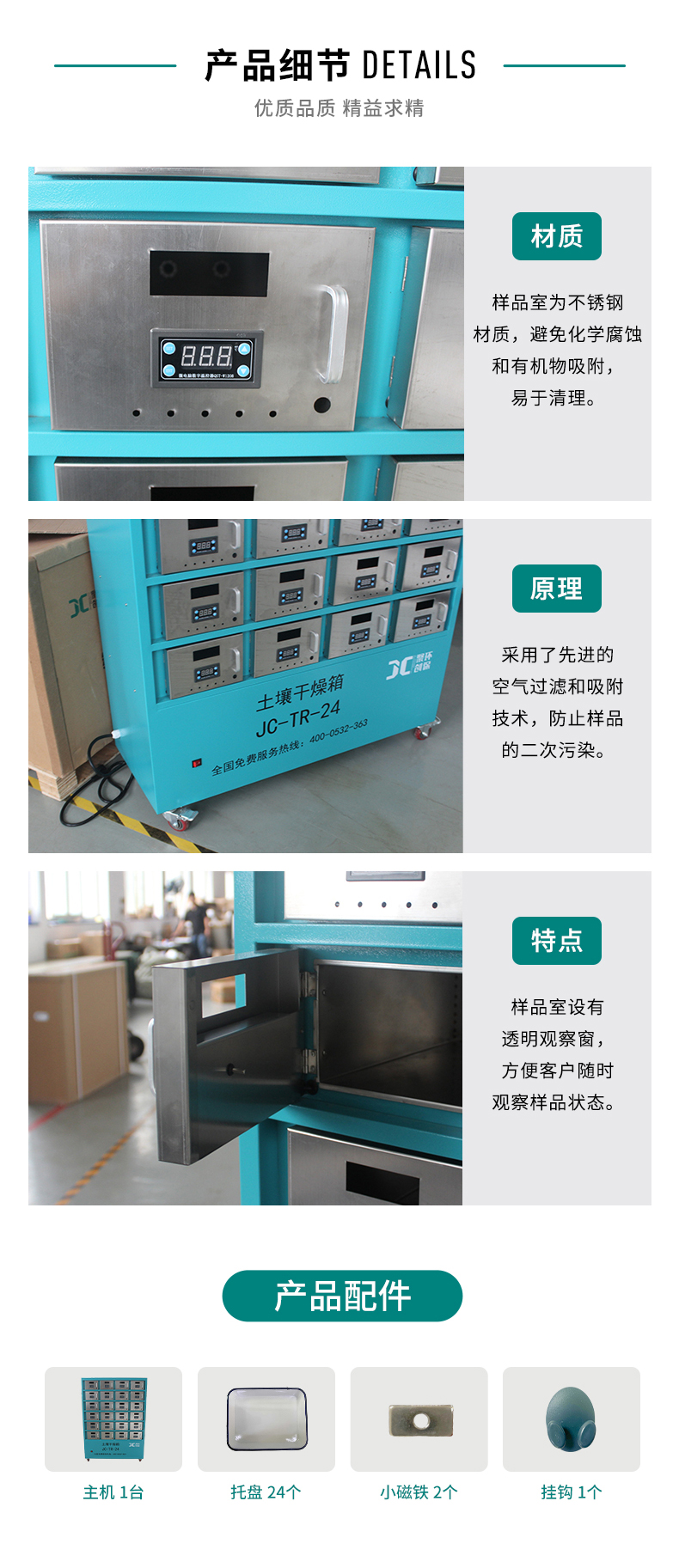 土壤干燥箱JC-TR-24采用模擬室內空氣流動模式,即風干模式進行土壤的干燥。干燥空氣是經過粗過濾和活性炭吸附的潔凈熱空氣,樣品分室獨立存放和干燥,它具有潔凈,避免樣品交叉污染;省時;省力;節省空間;提高土壤干燥效率等特點。