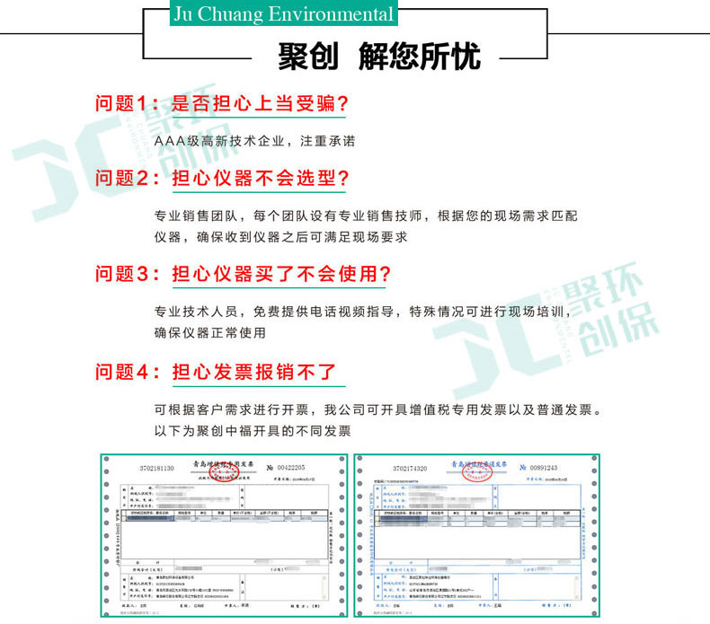 先確認所需儀器的精度、穩定性以及所需檢測的項目,一般需求可選JC-TY01、JC-TY02實用型及標準型;對穩定性要求比較高且測試項目要求全面建議選擇JC-TY03、JC-TY04功能型及科研型。其次選擇服務好、專業且有實力的廠家,售后才有保障。聚創環保提供儀器整機質保五年,終身免費維修服務!