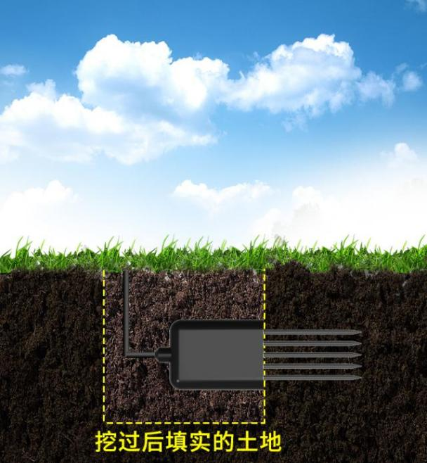 垂直挖大約直徑20cm的坑,在既定的深度將傳感器鋼針水平插入坑壁,將坑填埋嚴實,穩定一段時間后,即可進行連續數天,數月乃至更長時間的測量和記錄。