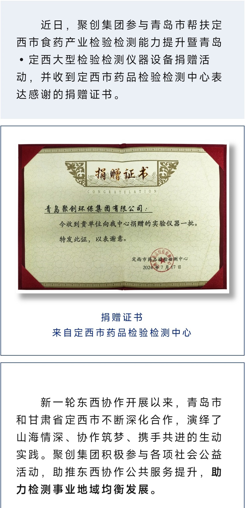 社會公益 | 聚創集團向定西市捐贈檢驗檢測儀器設備