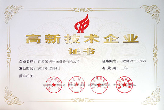 青島聚創(chuàng)環(huán)保通過高新技術(shù)企業(yè)認證啦