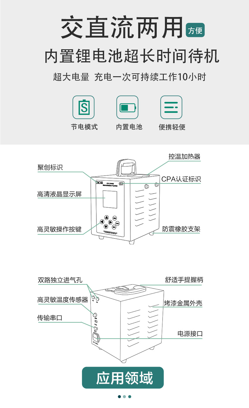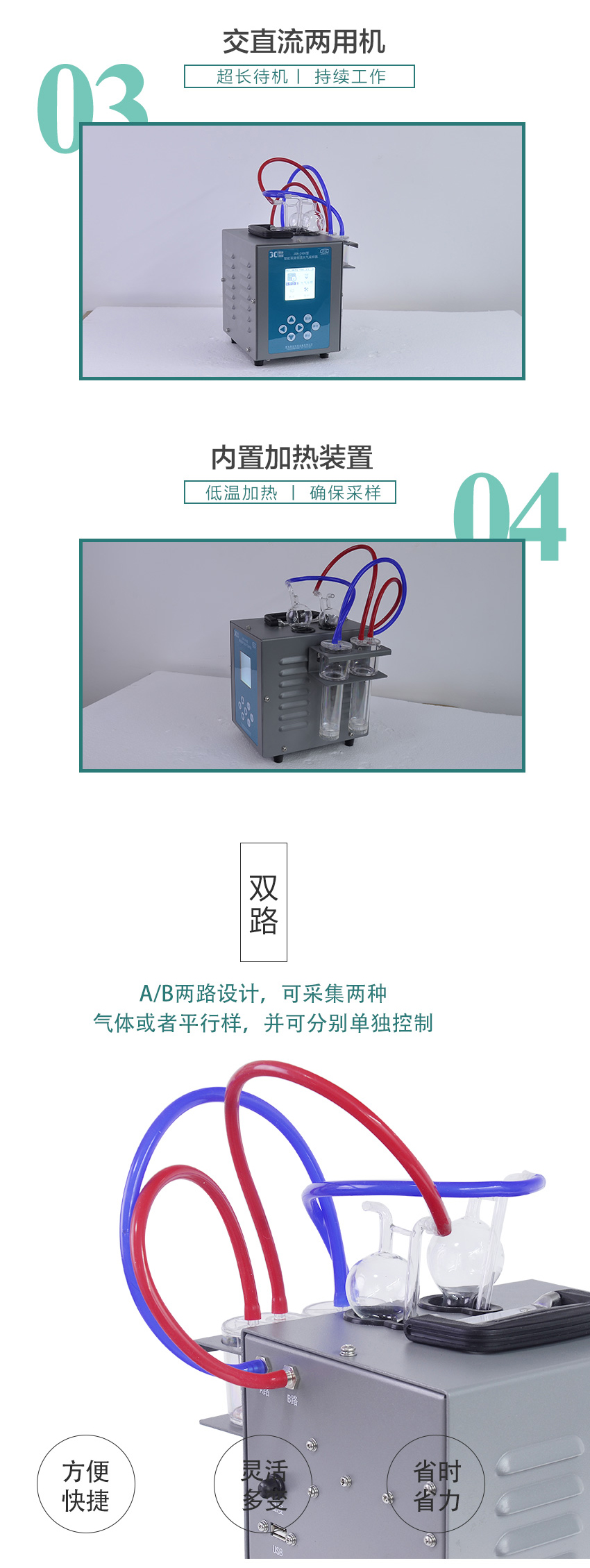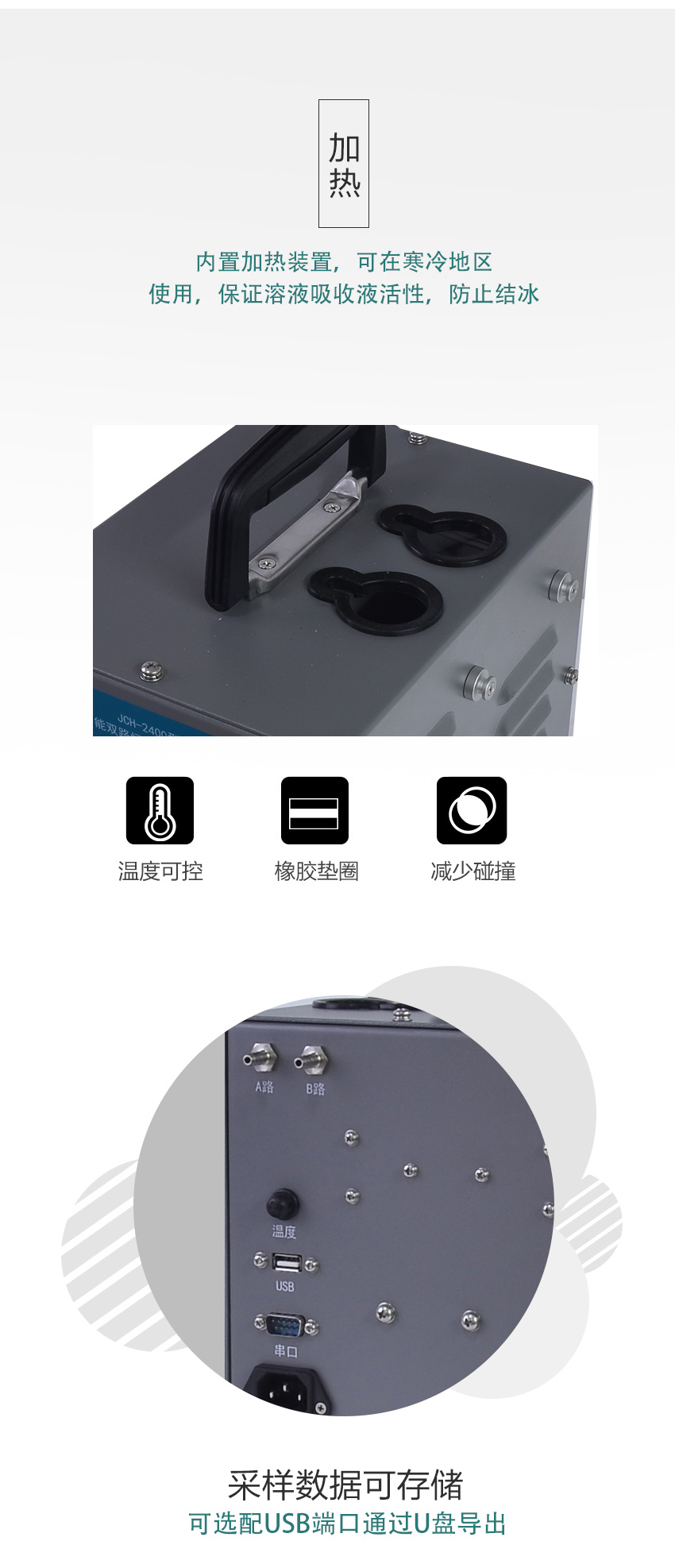 本儀器采用溶液吸收法采集環境及室內環境中的甲醛,氨氣、苯、TVOC、SO2、NOx等有害氣體,是環境監測、工程質量監督和衛生防疫等部門采集各種有毒、有害氣體的理想選擇。