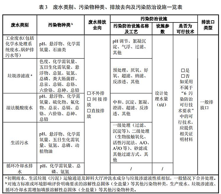排污單位按 GB 18485、GB 16889、GB 8978 等標準要求確定表 3 所列的水污染物種類 許可排放濃度。地方污染物排放執行標準有更嚴格要求的,從其規定。 排污單位在同一個廢水排放口排放兩種或兩種以上工業廢水,且每種廢水同一種污染物 的排放標準不同時,廢水適用 GB 8978 的,按照 GB 8978 附錄 A 的規定確定許可排放濃度; 若無法按照 GB 8978 附錄 A 的規定執行的,則按照從嚴原則確定許可排放濃度。