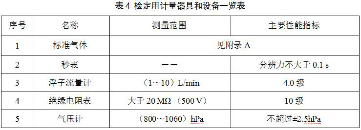 標準氣體、秒表、浮子流量計、絕緣電阻表、氣壓計
