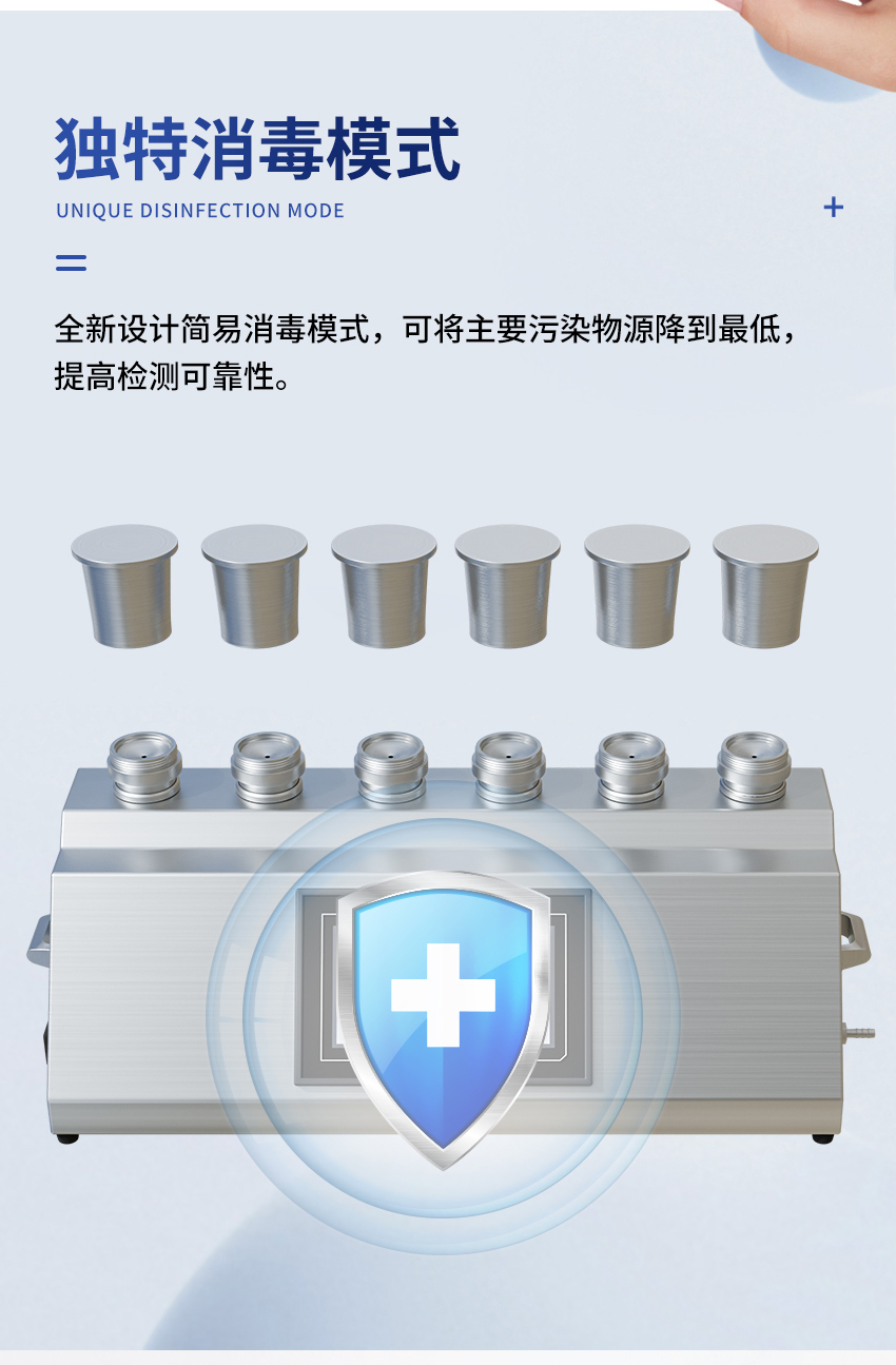 6.獨(dú)特消毒模式:全新設(shè)計(jì)簡易消毒模式,可將主要污染物源降到最低,提高檢測可靠性。