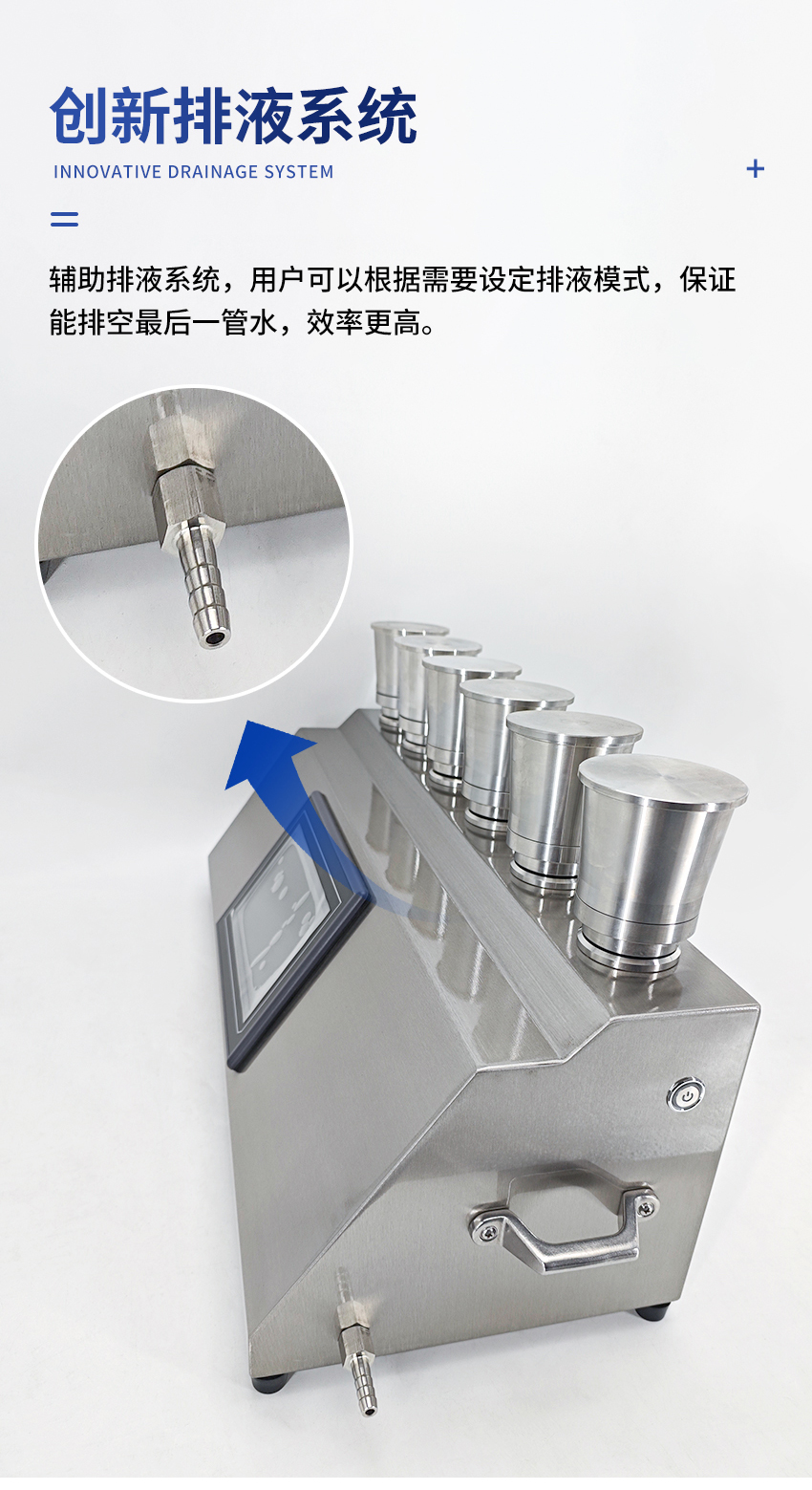 7.創(chuàng)新排液系統(tǒng):為解決最后一軟管廢水排不凈問題,全新研發(fā)了輔助排液系統(tǒng),用戶可以根據(jù)需要設(shè)定排液模式,保證能排空最后一管水,不會(huì)滴水殘留,潔凈桌面內(nèi)置進(jìn)口隔膜液泵,效率更高。