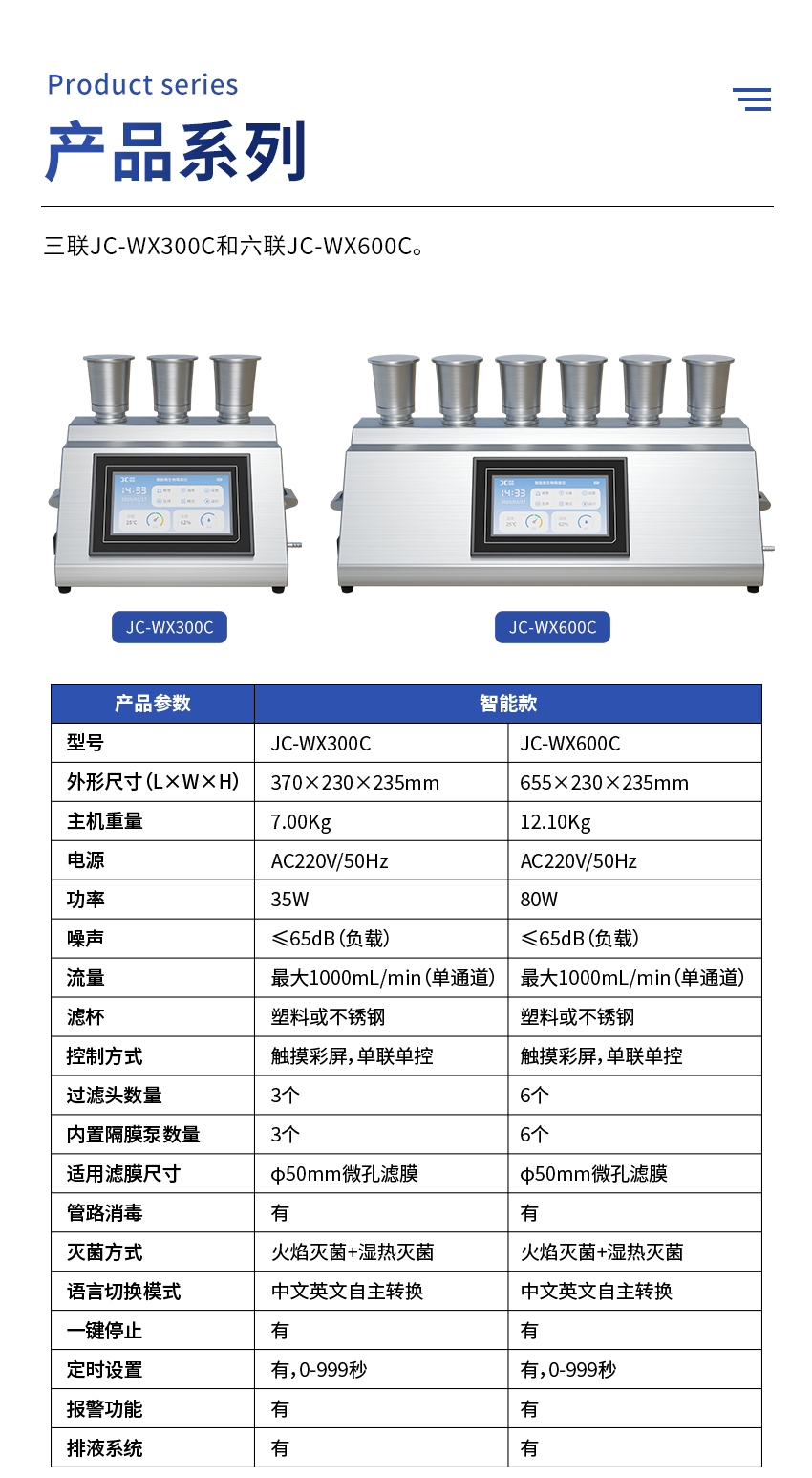 ② 智能款:運(yùn)用觸摸屏程序控制,同樣可單聯(lián)單控,且每個(gè)聯(lián)數(shù)的抽濾速度一致。
