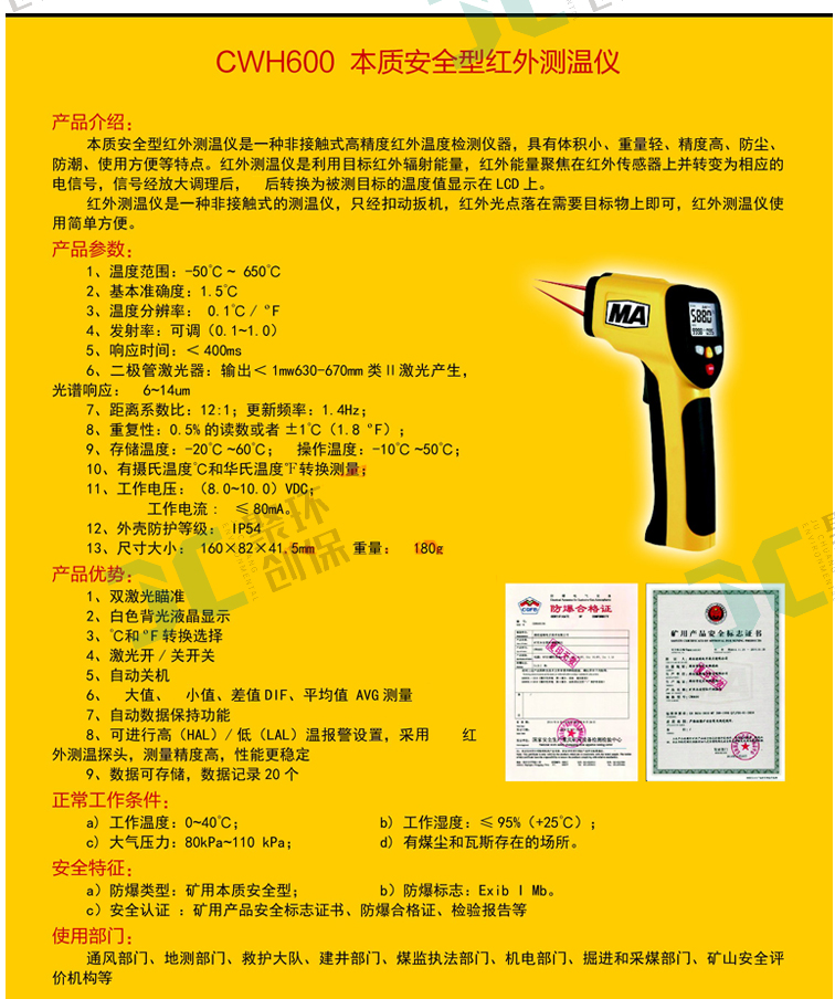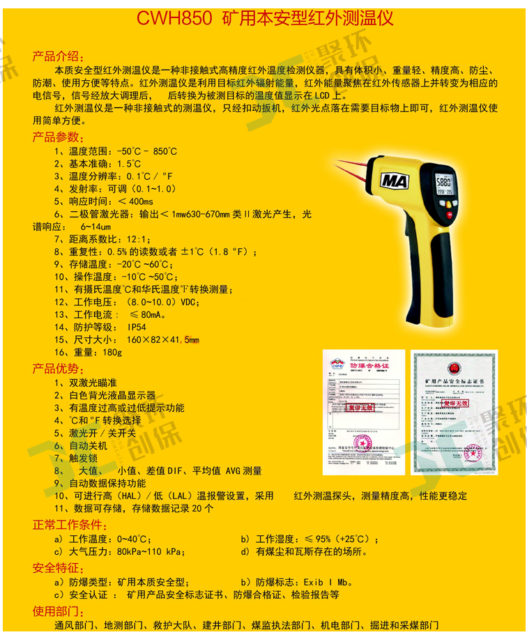 產品名稱:CWH600_CWH850本質安全型紅外測溫儀(非醫用)