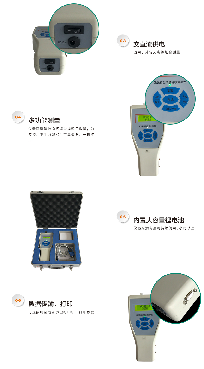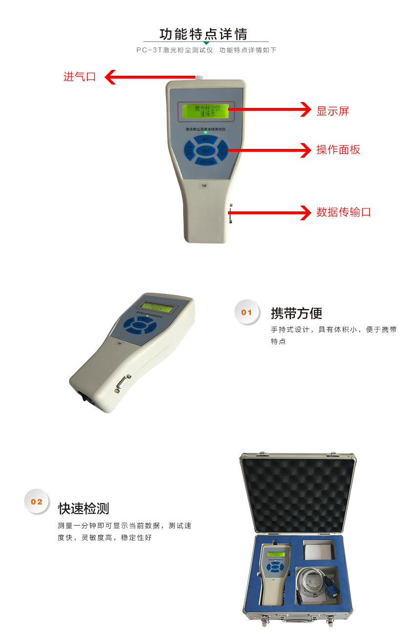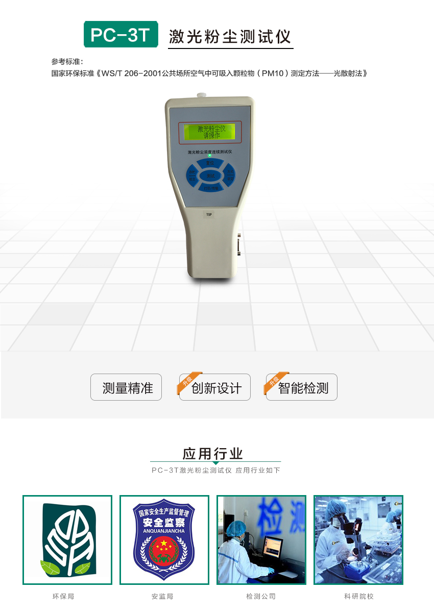 一般性生產車 間,公共場所,疾病控制中心,衛生監督,環境監測等部門用便攜式粉塵儀即可,檢測PM2.5、PM10、TSP;