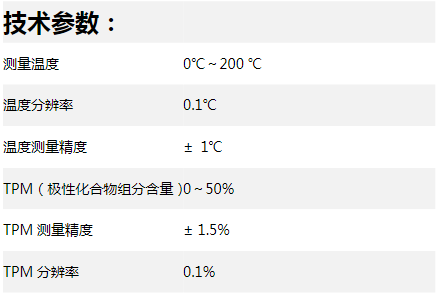 食用油品質檢測儀,能夠快速檢測食用油中的極性化合物組分含量,且能夠在油溫較高的環境下使用,適用于各種煎炸食用油品質的檢測。