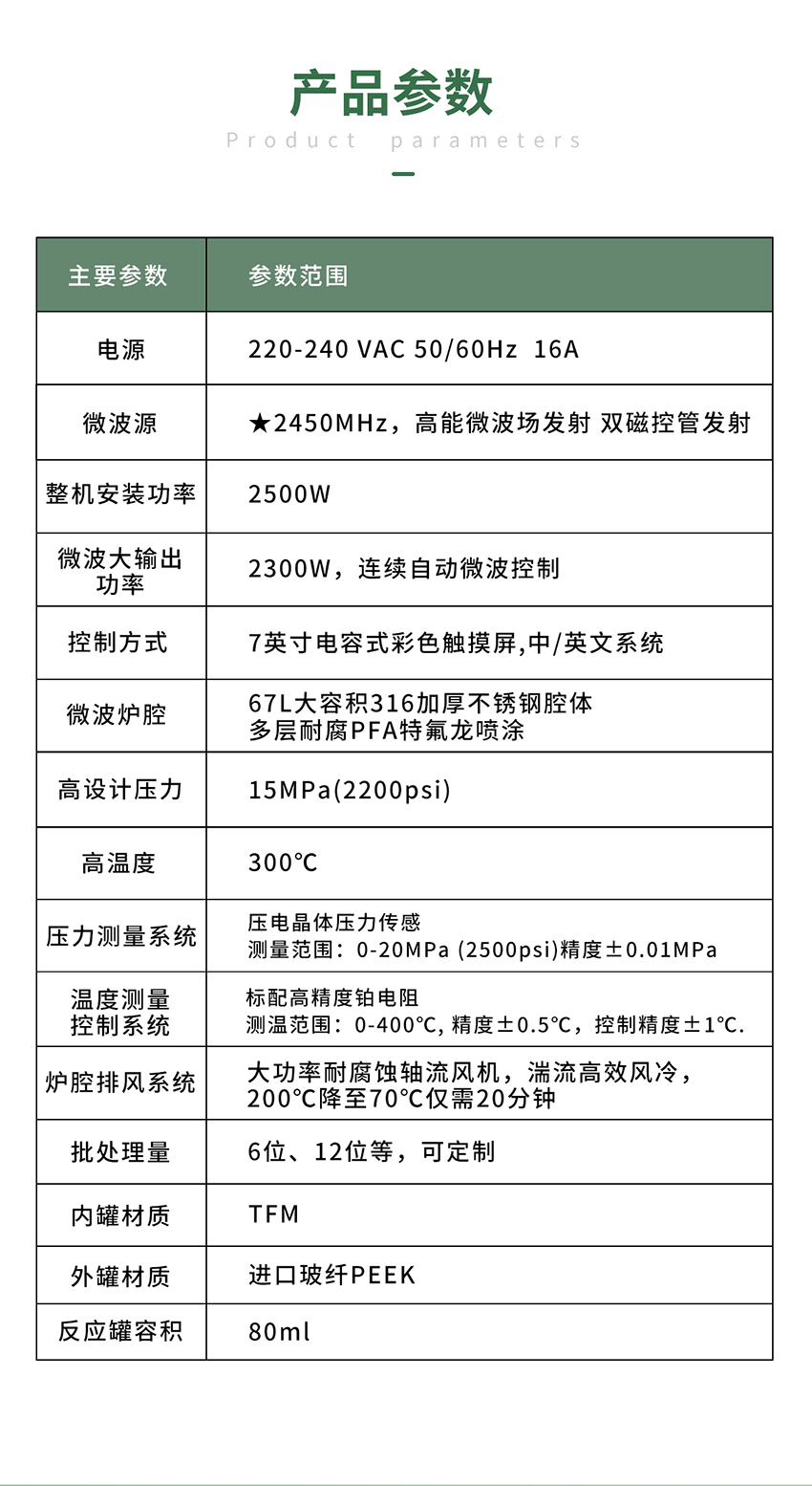 1、67L大工業爐腔+雙磁控管結構,形成高密均勻微波場,保證各反應罐加熱均勻。