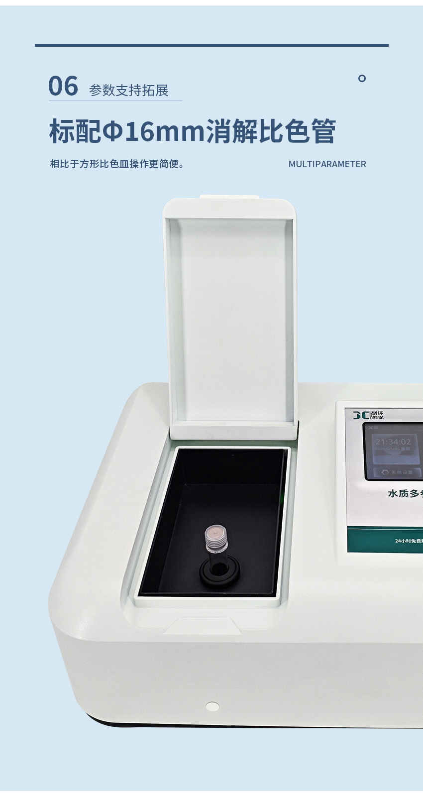 8. 簡易比色設計:比色池適用于Φ16mm圓形比色管,相較于方形比色皿,其操作過程更加簡便。