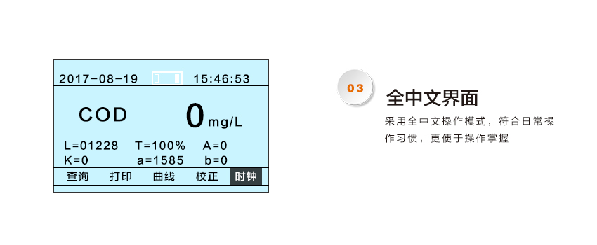 31點至7點校正模式,自動計算斜率、截距及相關系數,測量精度高。