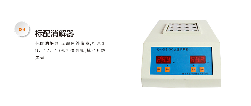 JC-201A型、JC-301A型、JC-401A 型、JC-501A 型、JC-201C 型、JC-301C型、JC-401C型、JC-501C 型、多參數檢測儀均有9孔、12孔、16孔的消解樣品數供您選擇。