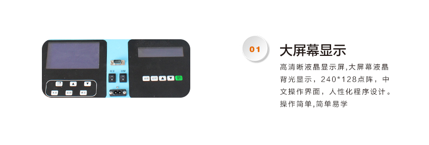 1、雙LCD顯示器,大屏幕液晶背光顯示,240*128點陣,中文操作界面,人性化程序設計。