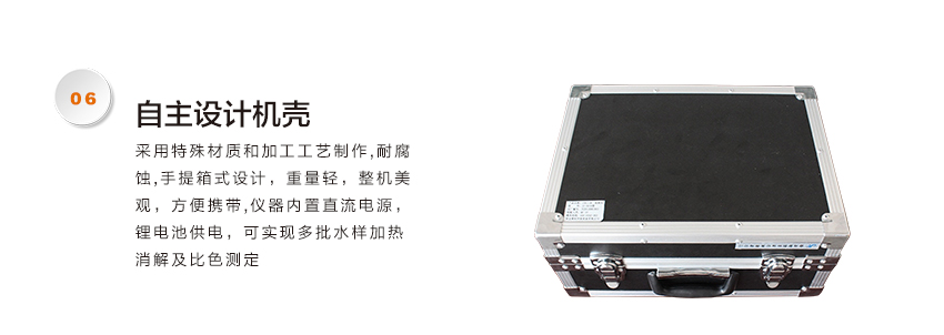 14、儀器內置直流電源,鋰電池供電,可實現多批水樣加熱消解及比色測定。