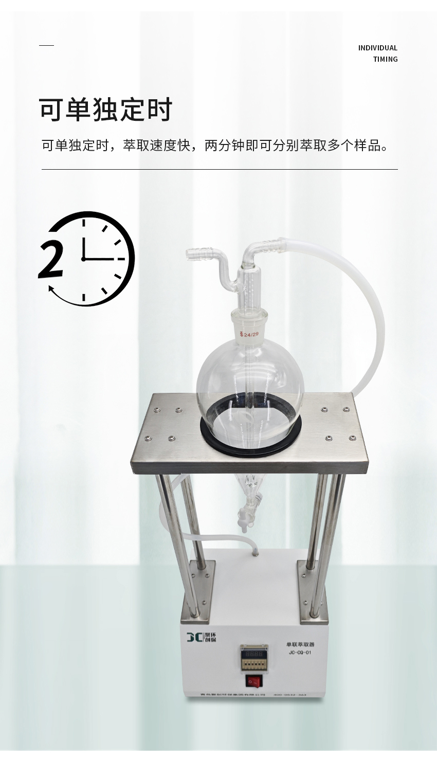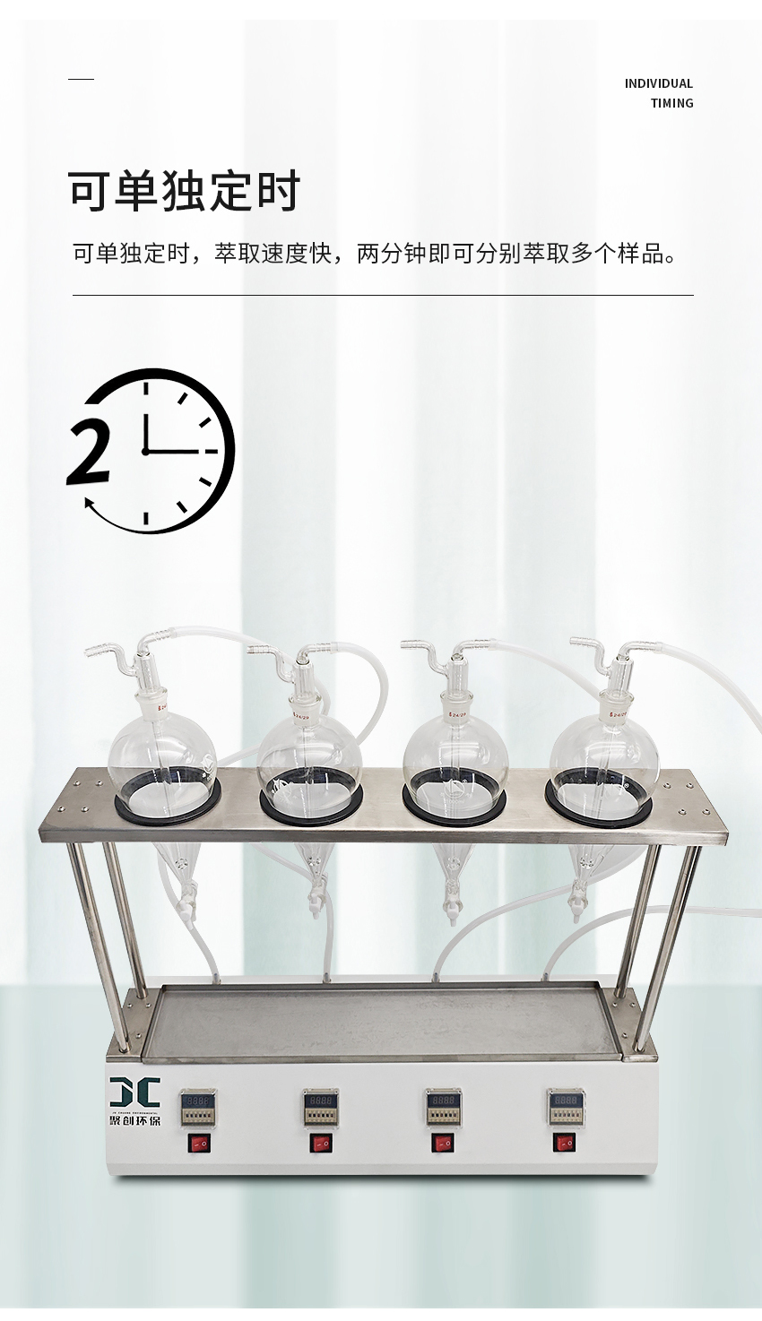 3.可單獨定時,萃取速度快,兩分鐘即可分別萃取多個樣品。