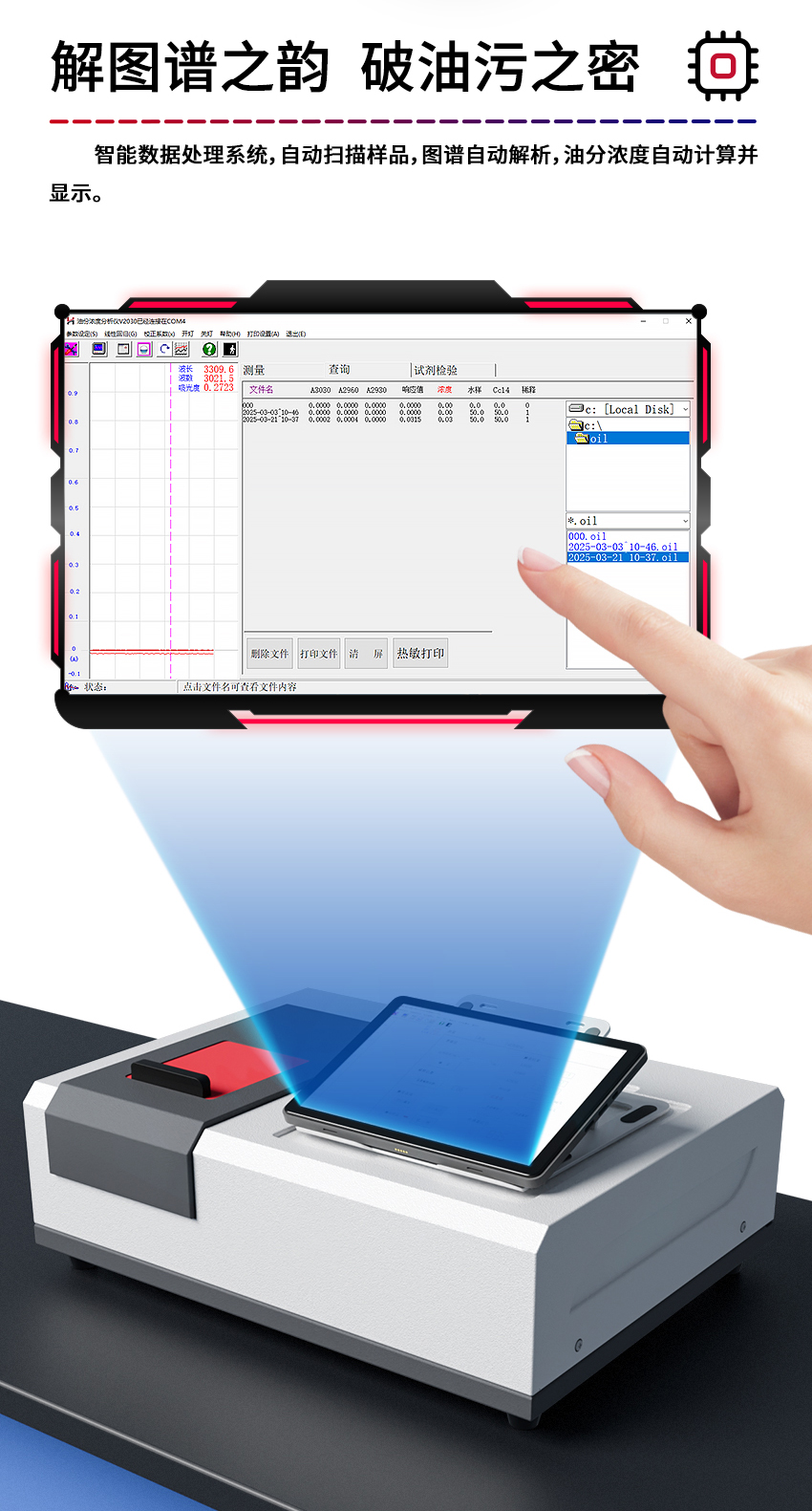 傳統的成分分析采用先取樣,再以定性方式量測的方法,耗時較長,且無法及時獲取測量數據。而大多數物質的分子官能基能夠吸收紅外光,利用光譜能量的吸收與轉換,很容易對物質內部成分進行定性分析和定量計算。漢禾H - SOIL720型紅外測油儀正是基于這一基本原理,運用紅外分光光度測量技術,通過對樣品進行光譜掃描,可顯示并打印樣品光譜及吸收峰的波數位置,能夠迅速、準確地測出水體中油份濃度的全部含量。