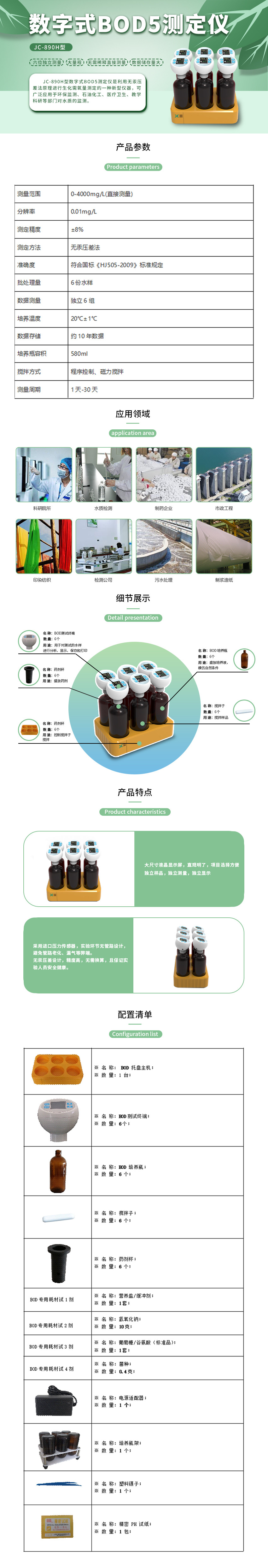 JC-890H型數字式BOD5測定儀是利用無汞壓差法原理進行生化需氧量測定的一種新型儀器,可廣泛應用于環保監測、石油化工、衛生、教學科研等部門對水質的監測。